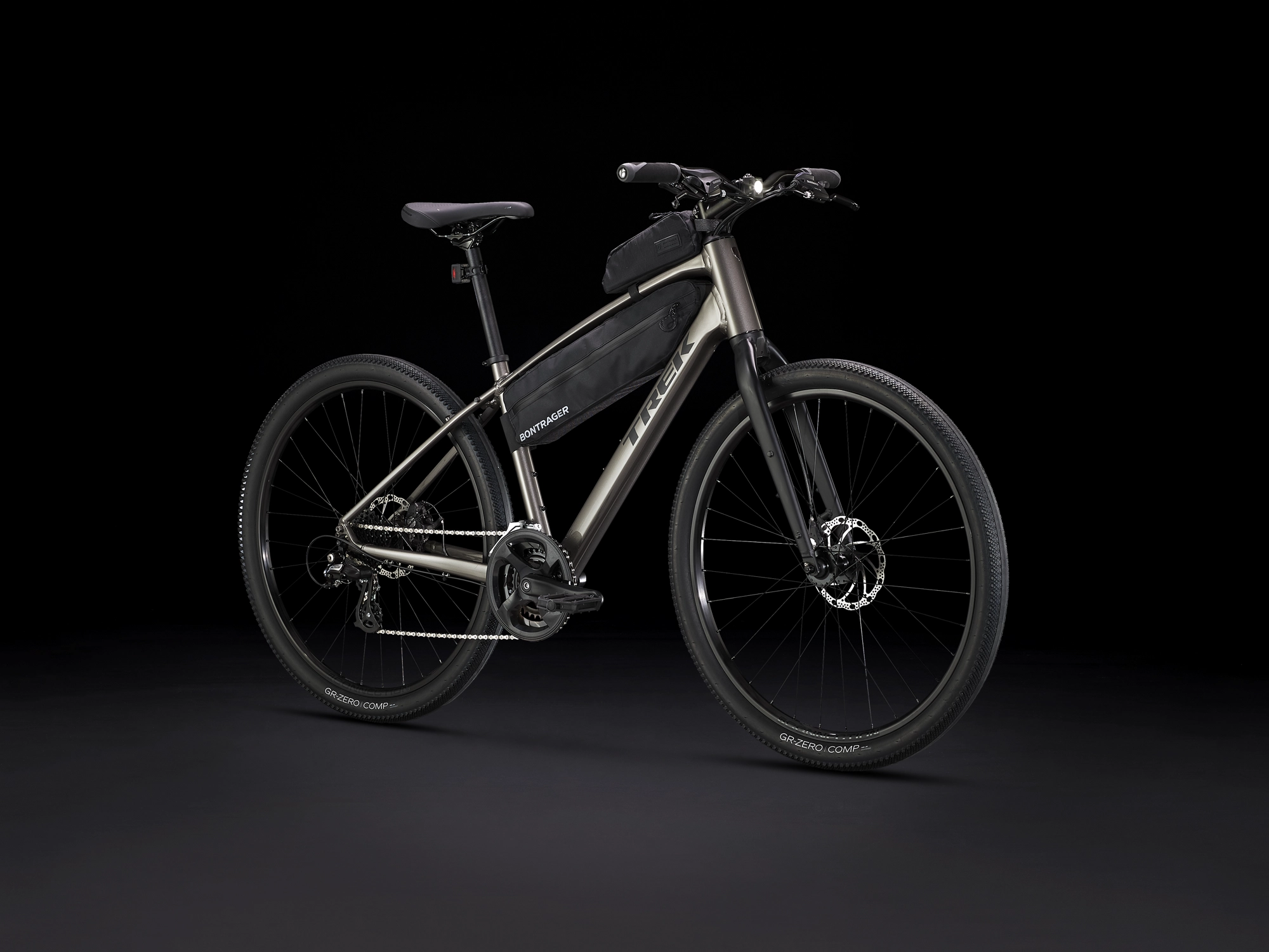 Das Dual Sport 1 ist ein vielseitiges Hybridbike, das Fahrspaß auf unterschiedlichstem Terrain bietet. Es punktet mit einem leichten Rahmen, einem robusten Antrieb und kraftvollen Bremsen. Die breiten Felgen und luftigen Reifen schlucken Unebenheiten und raues Terrain und sorgen für Fahrkomfort auf Asphalt, leichten Schotterwegen, Radwegen und vielem mehr.… du ein robustes und leichtes Hybridbike willst, das sich effizient auf Asphalt und komfortabel in unebenem Terrain und auf leichten Trails fährt. Vertrauenerweckende Stabilität, hohe Vielseitigkeit und großartige Performance auf entspannten Runden, sportlichen Touren und beim Pendeleinsatz in unterschiedlichstem Terrain sind dir besonders wichtig.Einen leichten Aluminiumrahmen mit interner Zugführung für einen schnittigen Look und mit Montagepunkten für Gepäckträger und Schutzbleche, 650B-Laufräder mit breiten 50C-Reifen zur Verbesserung der Geländegängigkeit und des Komforts in abwechslungsreichem Terrain, eine zuverlässige 2×8-Schaltung von Shimano mit breitem Übersetzungsbereich für eine stets optimale Trittfrequenz, komfortable ergonomische Griffe und kraftvolle mechanische Scheibenbremsen für zuverlässige Bremsleistung bei jeder Witterung.Das Dual Sport 1 ist ein vielseitiges Allround-Bike, mit dem du mehr von der Welt um dich herum entdeckst. Es ist das perfekte Hybridbike für alle, die gerne auf Asphalt und auf leichten Trails fahren.- Die breiten Laufräder und Reifen vermitteln den Fahrkomfort und das sichere Handling einer Federgabel ohne deren Mehrgewicht.- Die vielseitigen Reifen rollen schnell auf Asphalt und sind traktionsstark auf rauerem Untergrund.- Der leichte Aluminiumrahmen ist zuverlässig und robust und bietet dauerhaften Fahrkomfort.- Es lässt sich problemlos mit Gepäckträgern, Schutzblechen, Beleuchtung, Seitenständer und vielem mehr nachrüsten.FederleichtDas Dual Sport 3 ist leichter als je zuvor und macht nicht nur Spaß beim Fahren, sondern lässt sich auch leicht manövrieren und nach der Fahrt verstauen.Gebaut für TaschenNeue Befestigungspunkte passend zu den Bontrager Andventure Bags sorgen für sichere Befestigung der Taschen ohne Unmengen von Gurten. Einfach anschrauben, beladen und losfahren.Auf alles vorbereitetMit jeder Menge Befestigungsmöglichkeiten an Rahmen und Gabel ist das Dual Sport für jede Tour gerüstet. Gepäckträger, Schutzbleche und Zubehör lassen sich für Pendelfahrten oder Abenteuertouren anbringen.Geschlecht: UniRahmen: Alpha Gold Aluminium, interne Zugführung, Gepäckträger- und Schutzblechösen, Post Mount-Scheibenbremsaufnahme, Seitenständeraufnahme 135 x 5 mm SchnellspannachseRahmengröße: LRahmenmaterial: AluminiumGangschaltung: Shimano Altus M310Anzahl Gänge: 1Schalthebel: Shimano EF500, 8fach // Shimano EF500, 8fachHinterradbremse: Mechanische Scheibenbremse Tektro MD-U310, Flat Mount, 160 mm Scheibendurchmesser // Mechanische Scheibenbremse Tektro MD-U310, Flat Mount, 160 mm ScheibendurchmesserMax. BremsscheibenduVorderradbremse: Mechanische Scheibenbremse Tektro MD-U310, Flat Mount, 160 mm Scheibendurchmesser // Mechanische Scheibenbremse Tektro MD-U310, Flat Mount, 160 mm ScheibendurchmesserMax. BremsscheibenduGabel: Dual Sport steel, internal brake routing, fender mounts, rack mounts, ThruSkew 5mm QRSchaltwerk vorne: Shimano Tourney TY710, 34,9 mm Klemmdurchmesser, Top Swing, Dual PullSchaltwerk hinten: Shimano Altus M310Kurbelsatz: Geschmiedetes Aluminium, 46/30, Kettenschutz, 170 mm KurbelarmlängeGedichtetes Patronenlager, 68 mmKassette: Shimano HG31, 11-32, 8 speedKette: KMC Z8.3Lenker: Bontrager Riser-Lenker, Stahl, 25,4 mm, 30 mm Rise, 620 mm BreiteLenkervorbau: Bontrager, Aluminium, 25,4 mm Klemmdurchmesser, 10 Grad, 110 mm LängeLenkerband Griffe: Bontrager SatelliteSattel: Bontrager SportSattelstütze: Bontrager, Aluminium, 27,2 mm, 12 mm Versatz, 330 mm LängeRäder: Bontrager Connection, Hohlkammerfelge, 32-Loch, 20 mm Innenweite, Schrader-VentilFormula DC-20, Aluminium, 6-Loch-Scheibenaufnahme, 5 x 100 mm-SchnellspannachseFormula DC-22, Aluminium, 6-Loch-Scheibenaufnahme, 8/9/10-Freilaufnabe von Shimano, 135 x 5 mm-Schnellspannachse