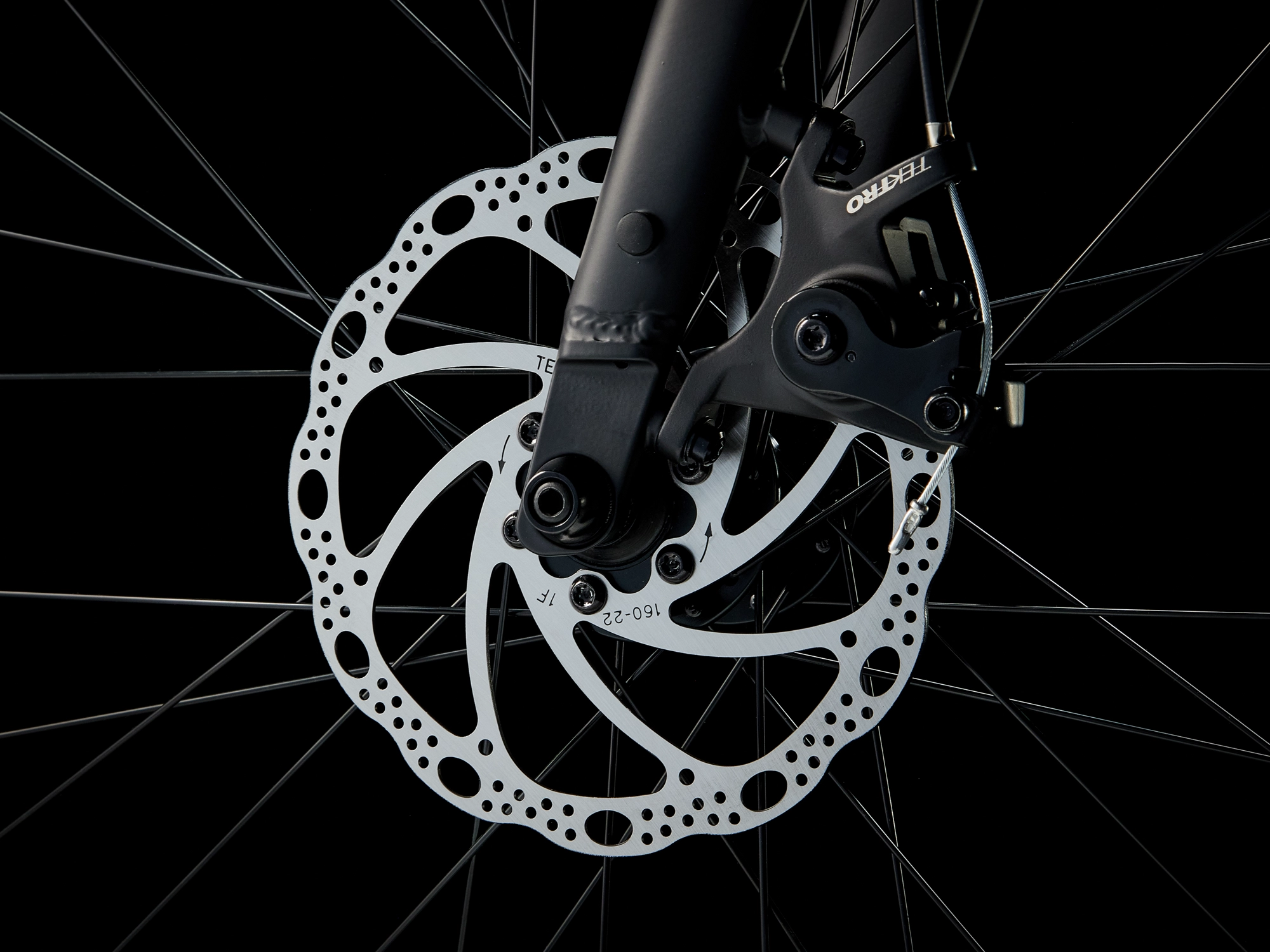 Vorderradbremse: Mechanische Scheibenbremse Tektro MD-U310, Flat Mount, 160 mm Scheibendurchmesser // Mechanische Scheibenbremse Tektro MD-U310, Flat Mount, 160 mm Scheibendurchmesser