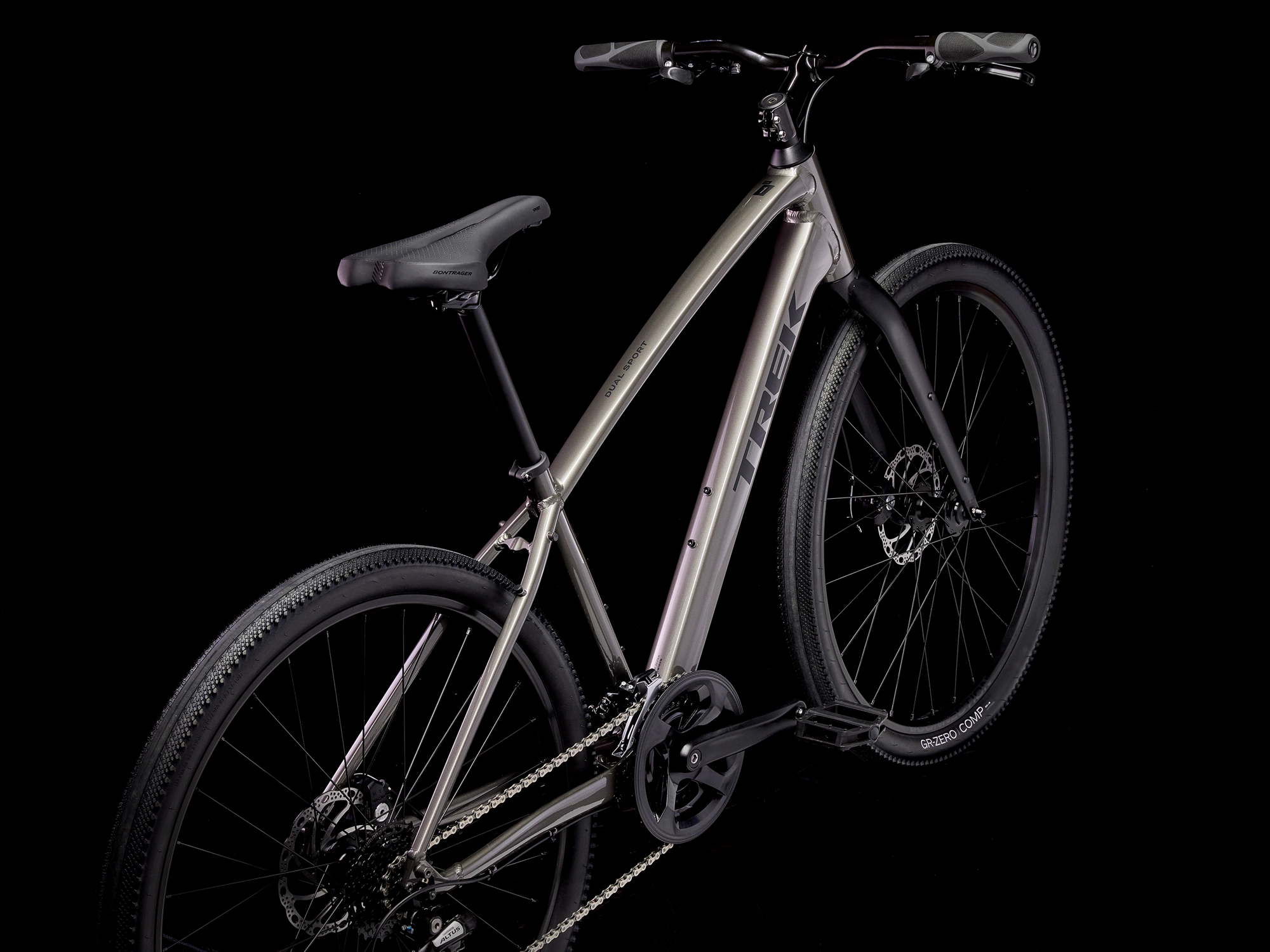 Einen leichten Aluminiumrahmen mit interner Zugführung für einen schnittigen Look und mit Montagepunkten für Gepäckträger und Schutzbleche, 650B-Laufräder mit breiten 50C-Reifen zur Verbesserung der Geländegängigkeit und des Komforts in abwechslungsreichem Terrain, eine zuverlässige 2×8-Schaltung von Shimano mit breitem Übersetzungsbereich für eine stets optimale Trittfrequenz, komfortable ergonomische Griffe und kraftvolle mechanische Scheibenbremsen für zuverlässige Bremsleistung bei jeder Witterung.