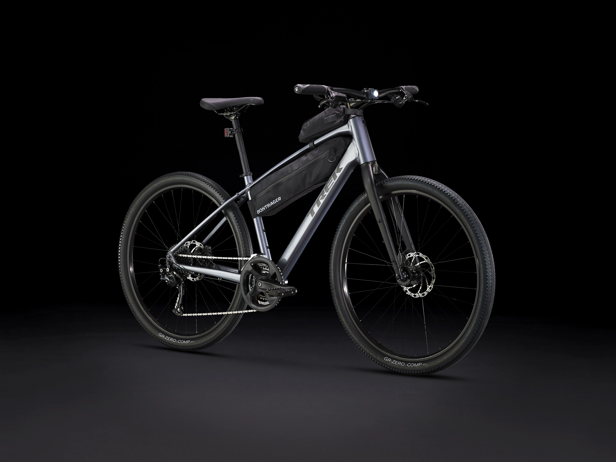 Das Dual Sport 2 ist ein souveränes und robustes Hybrid-Bike, mit dem Fahrspaß auf Straßen, Schotterpisten und mehr garantiert ist. Es punktet mit einem leichten Rahmen, einem robusten Antrieb mit 18 Gängen und kraftvollen hydraulischen Scheibenbremsen für beeindruckende Bremskraft. Die breiten Felgen und luftigen Reifen schlucken Unebenheiten und raues Terrain und sorgen für Fahrkomfort auf Asphalt, leichten Schotterwegen, Radwegen und vielem mehr.… du dein Fahrrad zum Spaß, für deine Fitness, zum Pendeln und für Besorgungen fahren willst. Dafür bist du auf der Suche nach einem leichten, robusten Allround-Bike, das jedes deiner Abenteuer mitmacht und für ausgezeichneten Komfort in unterschiedlichsten Terrains ausgestattet ist.Einen leichten Aluminiumrahmen mit interner Zugführung für einen schnittigen Look und mit Montagepunkten für Gepäckträger und Schutzbleche, 650B-Laufräder mit breiten 50C-Reifen zur Verbesserung der Geländegängigkeit und des Komforts in abwechslungsreichem Terrain, eine zuverlässige 2×9-Schaltung von Shimano mit breitem Übersetzungsbereich für eine stets optimale Trittfrequenz, komfortable ergonomische Griffe und kraftvolle hydraulische Scheibenbremsen für zuverlässige Bremsleistung bei jeder Witterung.Das Dual Sport 2 ist deine Eintrittskarte in eine Welt voller Abenteuer auf der Straße und im Gelände Ob auf Gravelpisten oder auf dem Weg zur Arbeit, auf dieses Bike kannst du dich stets verlassen.- Die steifen Laufräder und die breiten Reifen vermitteln den Fahrkomfort und das sichere Handling einer Federgabel ohne deren Mehrgewicht.- Die vielseitigen Gravelreifen rollen schnell auf Asphalt und sind traktionsstark auf rauerem Untergrund.- Die intern verlegten, vor Witterungseinflüssen geschützten Züge tragen zum eleganten Look des Rahmens bei.- Es lässt sich problemlos mit Gepäckträgern, Schutzblechen, Beleuchtung, Seitenständer und vielem mehr nachrüsten.FederleichtDas Dual Sport 3 ist leichter als je zuvor und macht nicht nur Spaß beim Fahren, sondern lässt sich auch leicht manövrieren und nach der Fahrt verstauen.Gebaut für TaschenNeue Befestigungspunkte passend zu den Bontrager Andventure Bags sorgen für sichere Befestigung der Taschen ohne Unmengen von Gurten. Einfach anschrauben, beladen und losfahren.Auf alles vorbereitetMit jeder Menge Befestigungsmöglichkeiten an Rahmen und Gabel ist das Dual Sport für jede Tour gerüstet. Gepäckträger, Schutzbleche und Zubehör lassen sich für Pendelfahrten oder Abenteuertouren anbringen.Geschlecht: UniRahmen: Alpha Gold Aluminium, interne Zugführung, Gepäckträger- und Schutzblechösen, Post Mount-Scheibenbremsaufnahme, Seitenständeraufnahme 135 x 5 mm SchnellspannachseRahmengröße: LRahmenmaterial: AluminiumGangschaltung: Shimano Altus M2000, langer KäfigAnzahl Gänge: 1Schalthebel: Shimano Altus M2010, 9fach // Shimano Altus M2010, 9fachHinterradbremse: Max. BremsscheibenduVorderradbremse: Max. BremsscheibenduGabel: Dual Sport alloy, internal brake routing, fender mounts, rack mounts, ThruSkew 5mm QRSchaltwerk vorne: Shimano Acera T3000, 34,9 mm Klemmdurchmesser, Top Swing, Dual PullSchaltwerk hinten: Shimano Altus M2000, langer KäfigKurbelsatz: Geschmiedetes Aluminium, 46/30, Kettenschutz, 170 mm KurbelarmlängeGedichtetes Patronenlager, 68 mmKassette: Shimano HG200, 11-36, 9 speedKette: KMC X9Lenker: Bontrager, Aluminium, 31,8 mm, 15 mm Rise, 690 mm BreiteLenkervorbau: Bontrager Comp, 31 8 mm, Blendr-kompatibel, 7 Grad, 80 mm LängeLenkerband Griffe: Bontrager SatelliteSattel: Bontrager SportSattelstütze: Bontrager, Aluminium, 27,2 mm, 12 mm Versatz, 330 mm LängeRäder: Bontrager Connection, Hohlkammerfelge, 32-Loch, 20 mm Innenweite, Schrader-VentilFormula DC-20, Aluminium, 6-Loch-Scheibenaufnahme, 5 x 100 mm-SchnellspannachseFormula DC-22, Aluminium, 6-Loch-Scheibenaufnahme, 8/9/10-Freilaufnabe von Shimano, 135 x 5 mm-Schnellspannachse
