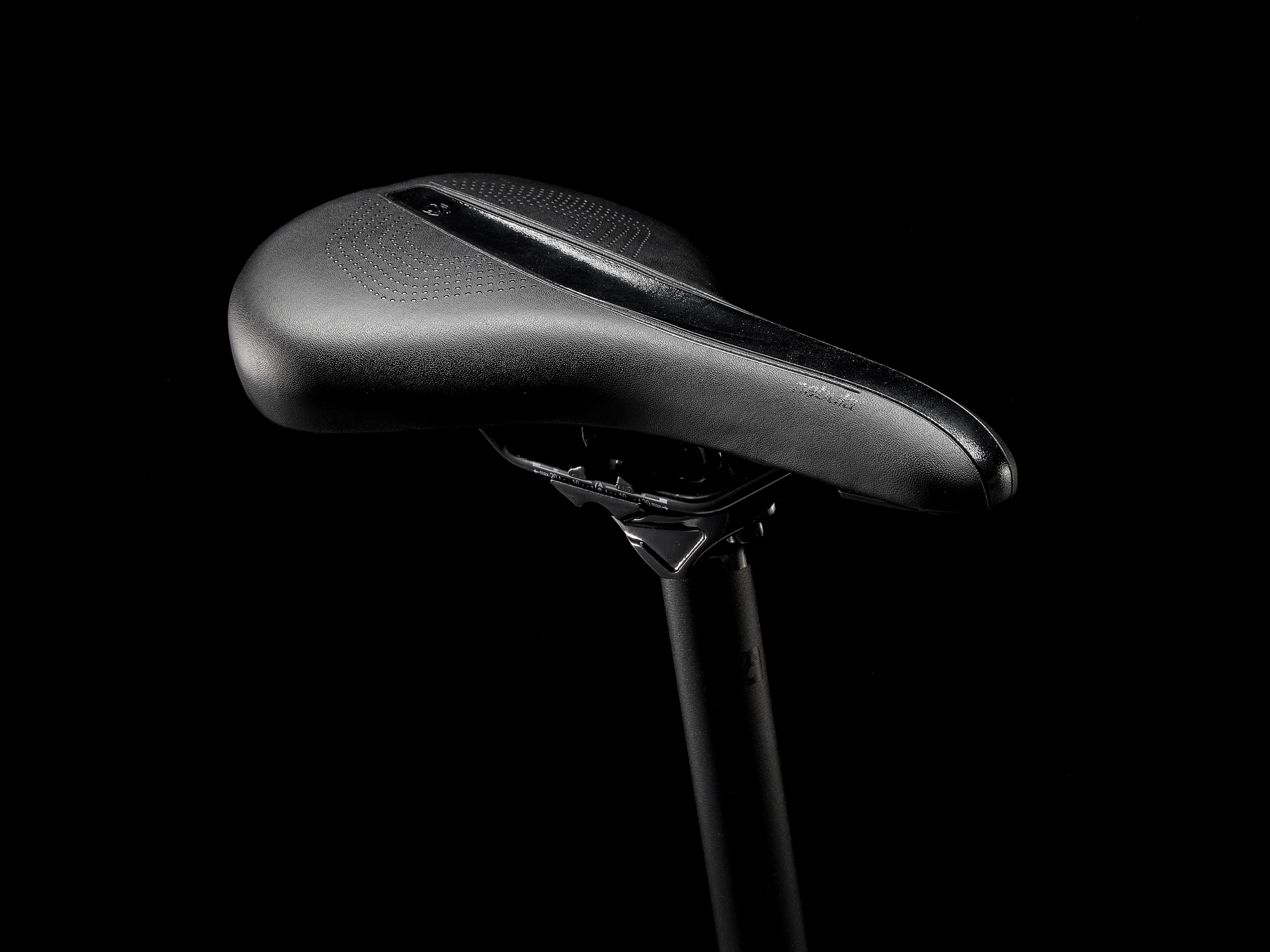 Einen leichten Aluminiumrahmen mit interner Zugführung für einen sauberen Look, eine leichte Carbongabel, Bontrager Kovee Tubeless Ready 650B-Laufräder mit breiten 50C-Reifen zur Verbesserung der Geländegängigkeit und des Komforts in abwechslungsreichem Terrain und eine einfach zu bedienende, umwerferlose Shimano Deore 1×10-Schaltung. Aber keine Sorge: Mit der breiten Übersetzungsspanne der 11-46-Kassette stehen dir mehr als genug Gänge für deftige Anstiege und rasante Abfahrten zur Verfügung. Dazu kommen kraftvoll zupackende Scheibenbremsen und Aufnahmen für einen Gepäckträger und Schutzbleche.