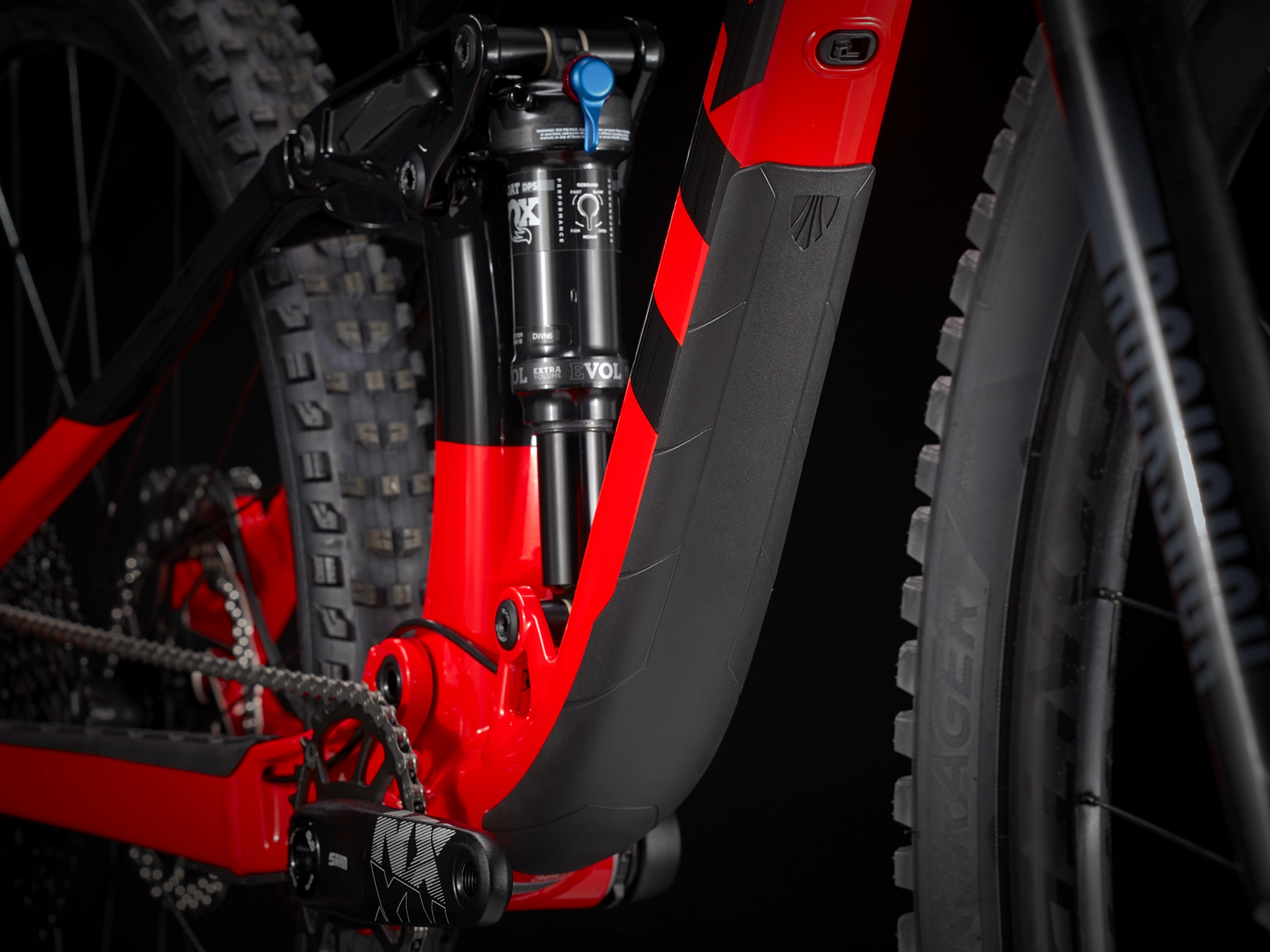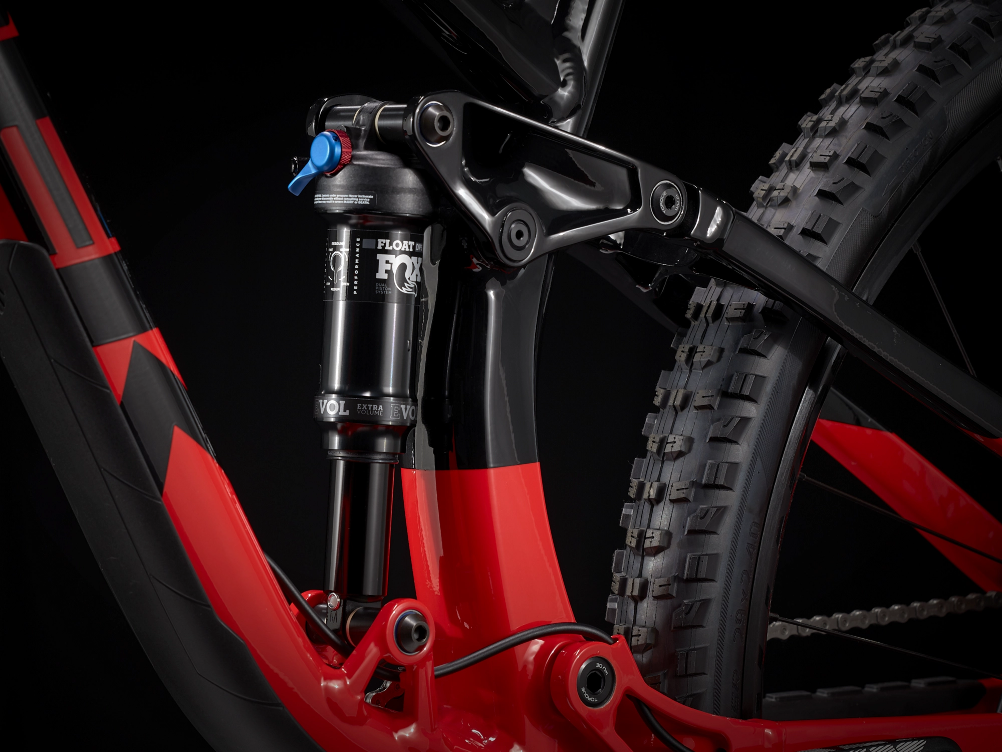 Einen leichten, steifen Aluminiumrahmen, eine 140 mm RockShox-Federgabel mit DebonAir-Feder für mehr Komfort bei kleinen Stößen und einen FOX-Dämpfer. Außerdem gibt es einen SRAM NX Eagle 1×12-Antrieb mit einem breiten Übersetzungsverhältnis, Bontrager Laufräder mit Tubeless-Reifen und eine Variosattelstütze.