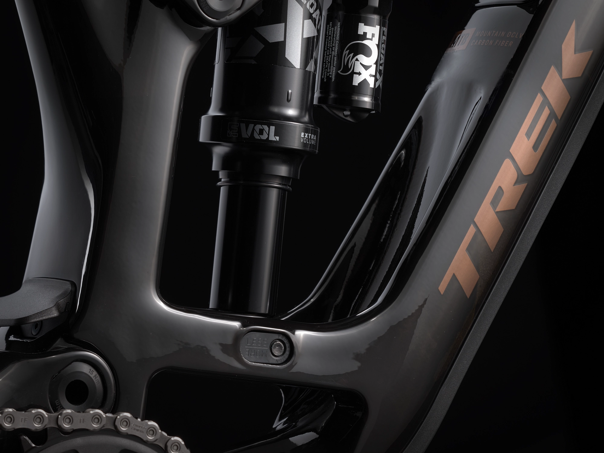 Rahmen: OCLV Mountain Carbon, integriertes Staufach, verstellbarer Steuersatzwinkel, per Mino Link abstimmbare Geometrie, einstellbare Progression, geführte interne Zugverlegung, Magnesiumumlenkhebel, 34,9 mm Sitzrohrdurchmesser, ISCG 05, 55 mm Kettenlinie, BSA 73, Unterrohrschutz, Shuttle-Guard, ABP