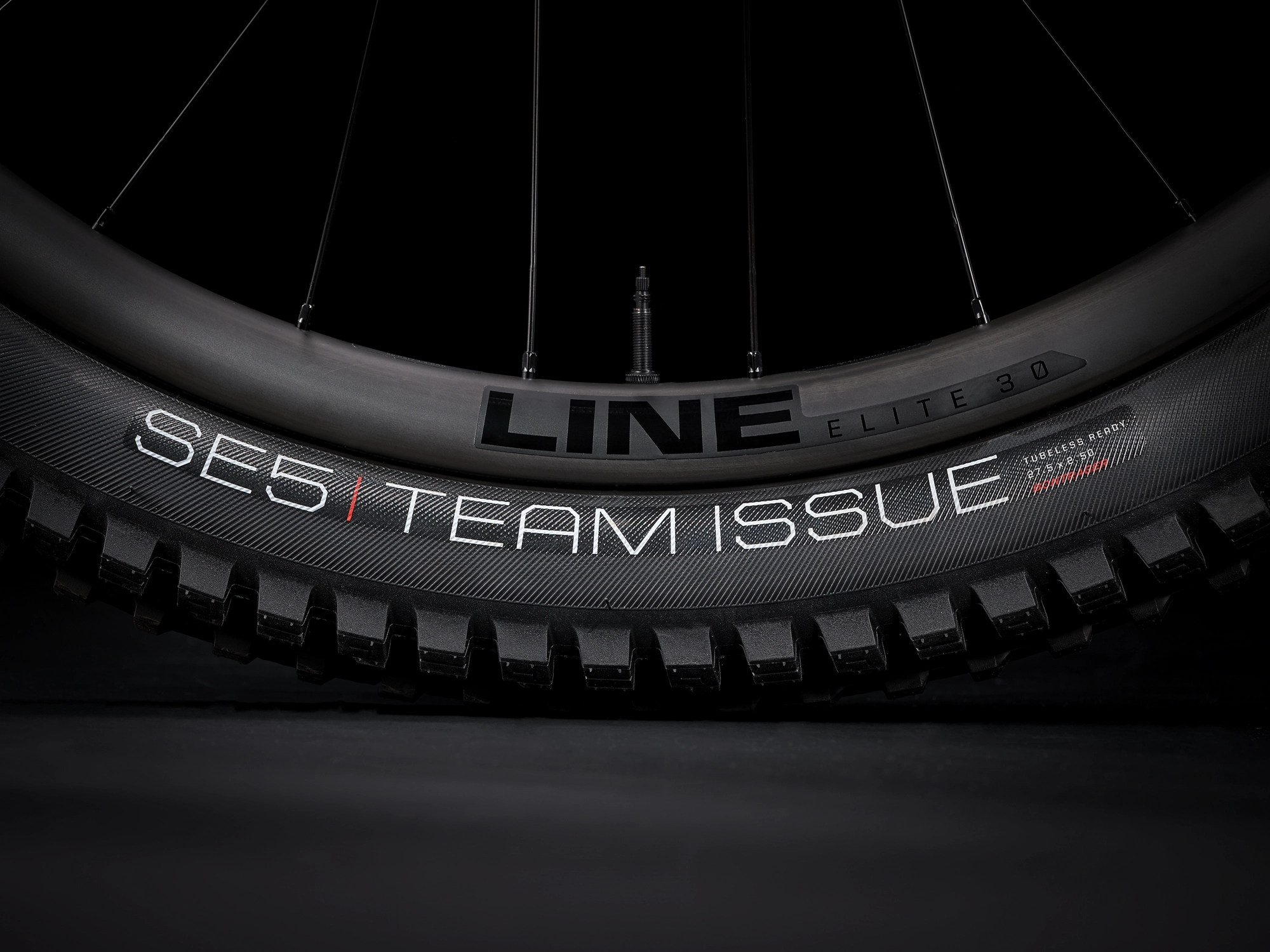 Räder: Bontrager Line Elite 30, OCLV Mountain Carbon, Tubeless Ready, 6-Loch-Scheibenaufnahme, Boost110, 15 mm Steckachse