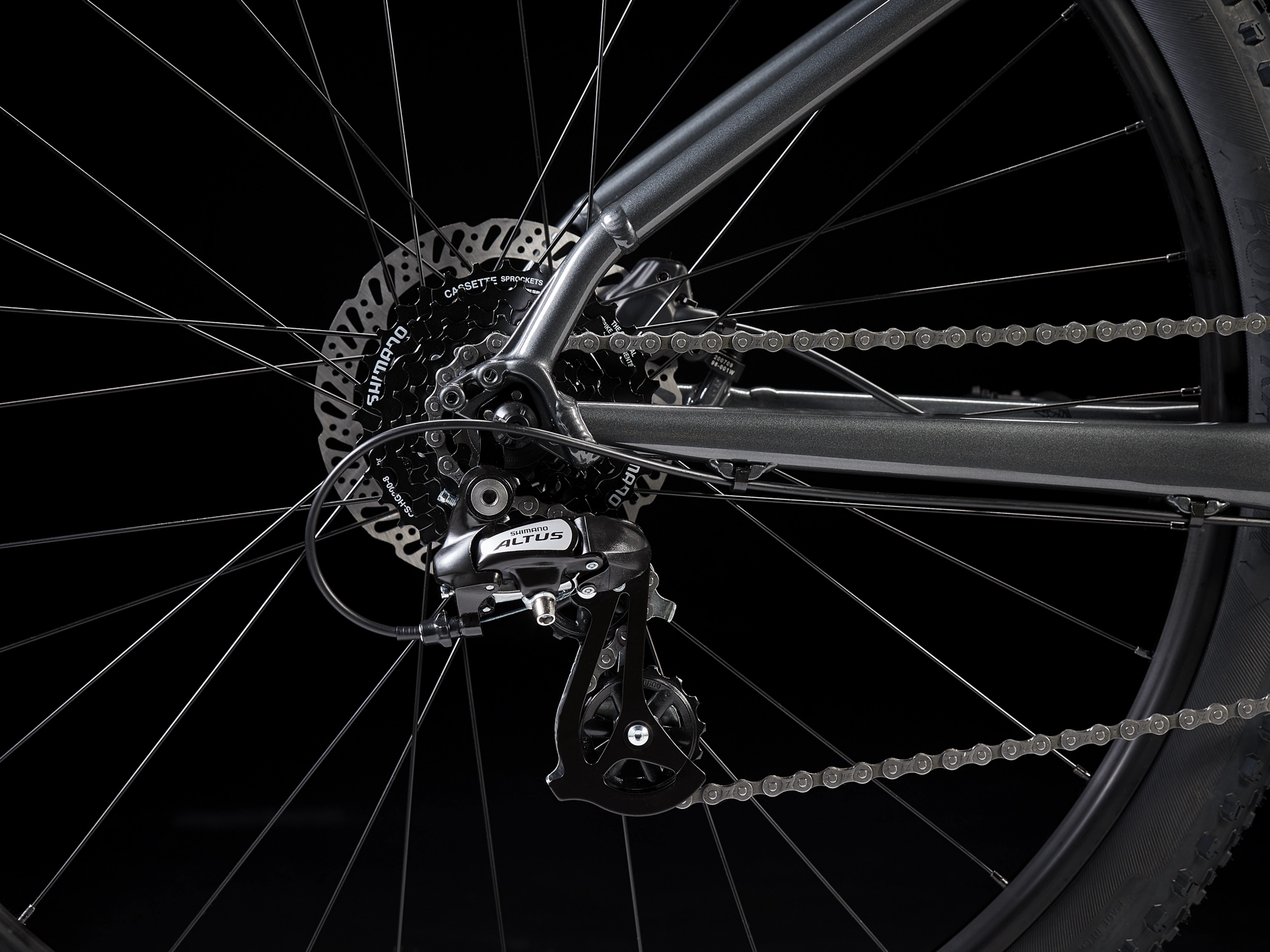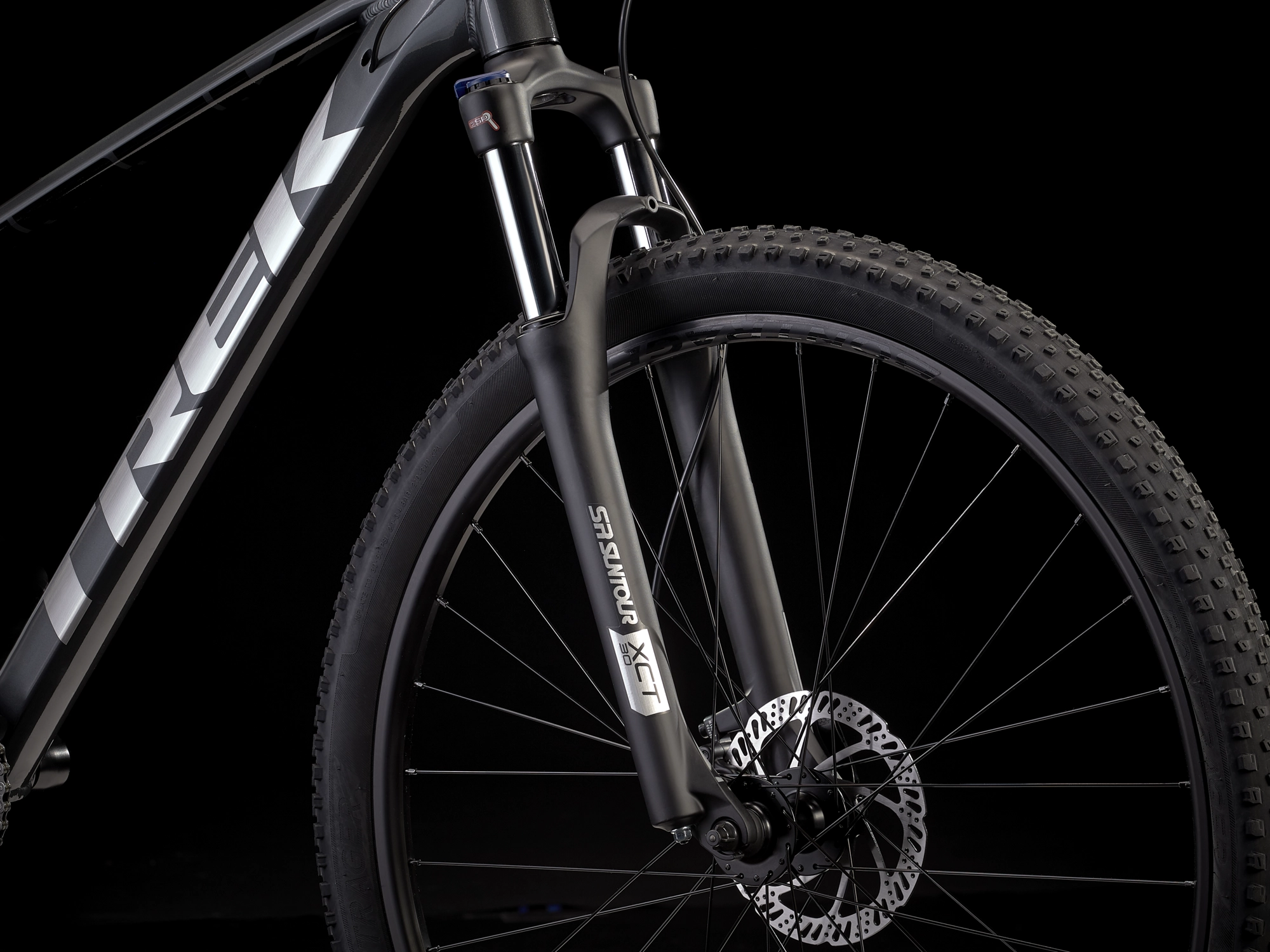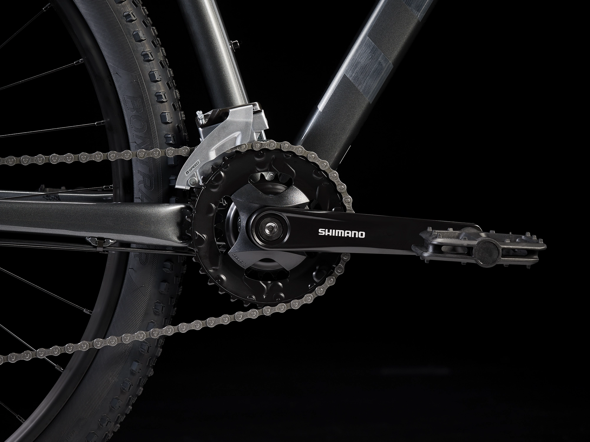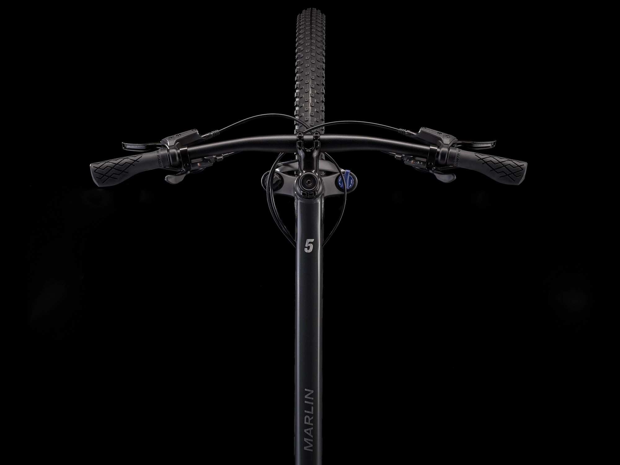 Das Marlin 5 ist ein vielseitiges Mountainbike, das alle Abenteuer – sowohl im Alltag als auch auf dem Trail – souverän meistert. Die Federgabel, der 2×8-Antrieb und die Befestigungsmöglichkeiten für Gepäckträger und Seitenständer machen es zur idealen Wahl für Trailneulinge und für alle, die auf der Suche nach einem komfortablen, stabilen Pendlerrad sind, das mit der Robustheit eines waschechten Mountainbikes punktet.… du neu auf dem Trail bist und du ein waschechtes Mountainbike suchst, das auch ohne Weiteres als Pendlerrad gefahren werden kann und darüber hinaus nicht die Welt kostet.Einen leichten Aluminiumrahmen mit interner Zugführung zum Schutz der Schaltzüge und für einen sauberen Look sowie einen 2×8-Antrieb mit breitem Übersetzungsbereich, damit dir in jedem Terrain stets der richtige Gang zur Verfügung steht. Dazu gibt es kraftvoll zupackende hydraulische Scheibenbremsen und eine Federgabel mit Lockout, die Unebenheiten souverän entschärft.Das Marlin 5 ist ein großartiges Bike für all deine Abenteuer. Es kann aber noch einiges mehr: So lassen sich etwa Gepäckträger und Seitenständer problemlos montieren, was das Marlin 5 zu einem beliebten Bike auf dem Campus macht.- Es ist ein waschechtes Mountainbike, das sich nicht nur als Fahrrad fürs tägliche Pendeln eignet, sondern auch auf dem Campus eine gute Figur macht und dich in praktisch jedem Terrain von A nach B bringt.- Bremshebel mit einer kleinen Griffweite erhöhen an kleineren Rahmengrößen (XXS, XS und S) den Bremskomfort für Fahrerinnen und Fahrer mit kleineren Händen.- Marlin-Modelle in den Rahmengrößen XXS bis S kommen mit einem gebogenen Oberrohr und einer niedrigeren Überstandshöhe, um kleineren Fahrerinnen und Fahrern das Auf- und Absteigen zu erleichtern.- Befestigungsmöglichkeiten für Gepäckträger und Seitenständer erleichtern das Anbringen von praktischem Zubehör, das dein Mountainbike zu einem robusten Pendler macht.- Wie jedes Modell in der Marlin-Familie ist es durch unsere lebenslange Garantie abgedeckt.Hat mein Bike ein gebogenes Oberrohr?Kleinere Rahmen haben ein Oberrohr, das kurz vor dem Sitzrohr einen Bogen nach unten macht. Dieses Design sorgt für eine niedrigere Überstandshöhe, was kleineren Fahrerinnen und Fahrern das Auf- und Absteigen erleichtert. Die größeren Rahmen kommen mit einem geraden Oberrohr, da größere Fahrer in der Regel kein Problem mit der Überstandshöhe haben.Viel Technik, attraktiver PreisDas Marlin sieht nicht nur gut aus, sondern fährt sich auch großartig. Es ist vollgepackt mit Features, die normalerweise nur an teureren Bikes zu finden sind, wie etwa der stylische Rahmen mit interner Zug- und Bremsleitungsführung zum Schutz der Züge vor den Elementen.Geschlecht: UniRahmen: Alpha Silver Aluminium, gebogenes Oberrohr, interne Zugführung, Scheibenbremsaufnahme an Kettenstrebe, Gepäckträgerösen, Seitenständeraufnahme, 135 x 5 mm SchnellspannachseRahmengröße: SRahmenmaterial: AluminiumGangschaltung: Shimano Altus M310Anzahl Gänge: 1Schalthebel: Shimano Altus M315, 8fach // Shimano Altus M315, 8fachHinterradbremse: Hydraulische Scheibenbremse Tektro HD-M275Vorderradbremse: Hydraulische Scheibenbremse Tektro HD-M275Reifen: Bontrager XR2 Comp, 29 x 2.20 (XS & S: 27.5 x 2.20)Gabel: SR Suntour XCT 30, Spiralfeder, verstellbare Federvorspannung, hydraulischer Lockout, 42 mm Vorbiegung für 27,5″-Laufrad, 100-mm-Schnellspannachse, 100 mm FederwegSchaltwerk vorne: Shimano Altus M315, 34,9 mm Klemmdurchmesser, Top Swing, Dual PullSchaltwerk hinten: Shimano Altus M310Kurbelsatz: Shimano M315, 36/22, 170 mm LängeSealed cartridge, 73mmKassette: Shimano, 8fach, 12-32 Z.Kette: KMC Z8.3, 8 speedSteuersatz: Semi-integriert, 1 1/8″Lenker: Bontrager aus Aluminium, 31,8 mm, 5 mm Rise, 720 mm BreiteLenkervorbau: Bontrager, Aluminium, 31,8 mm, Blendr-kompatibel, 7 Grad, 60 mm LängeSattel: Bontrager Arvada, Stahlstreben, 138 mm BreiteSattelstütze: Bontrager aus Aluminium, 31,6 mm, 12 mm Versatz, 330 mm LängeRäder: Formula Aluminiumnaben, Bontrager Connection FelgenBontrager Connection, Hohlkammerfelge, 32-Loch, 20 mm Innenweite, Schrader-VentilFormula DC-20, Aluminium, 6-Loch-Scheibenaufnahme, 5 x 100 mm-SchnellspannachseFormula DC-22, Aluminium, 6-Loch-Scheibenaufnahme, 8/9/10-Freilaufnabe von Shimano, 135 x 5 mm-Schnellspannachse