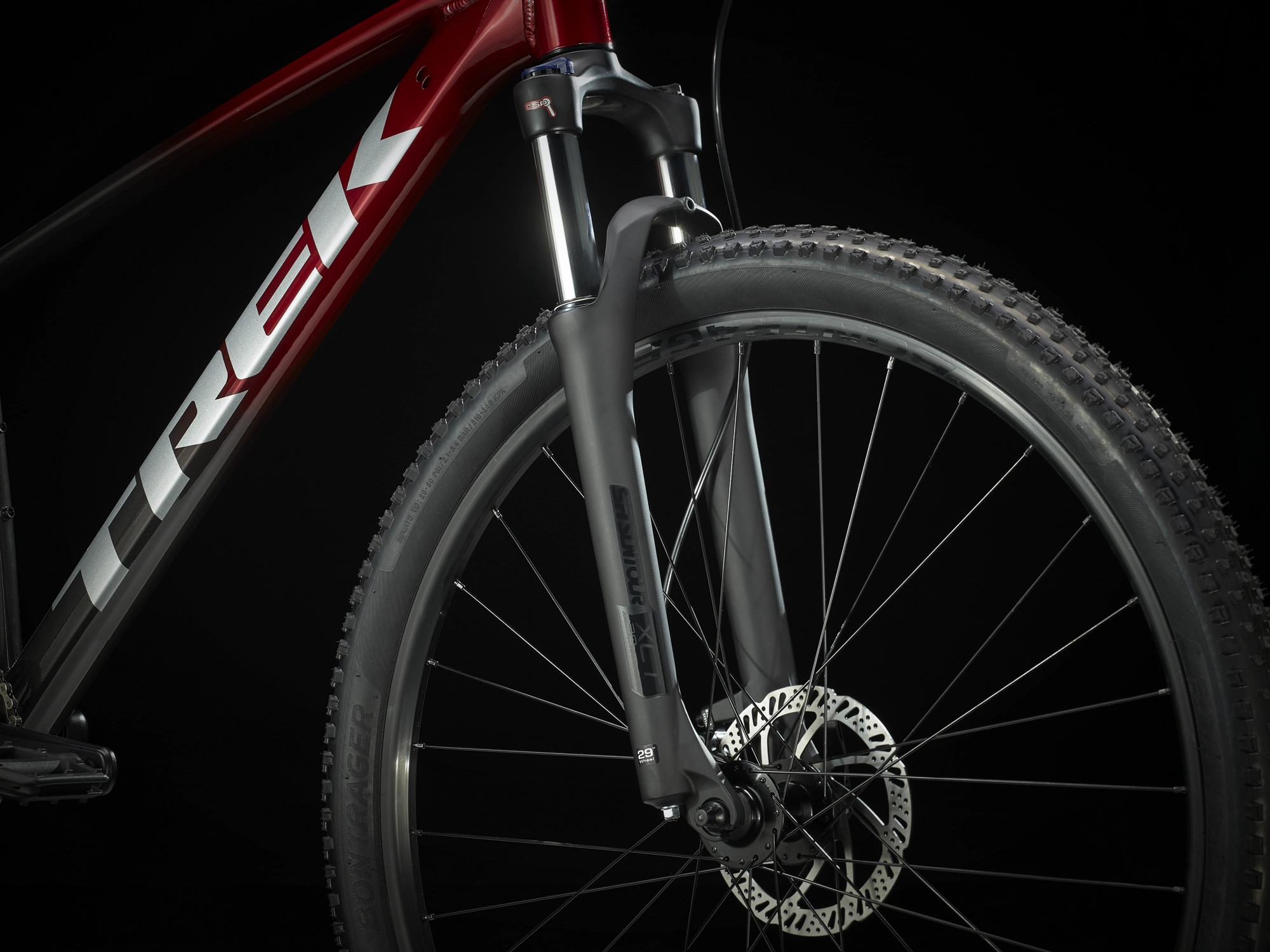 Das Marlin 6 mit blockierbarer Federgabel und unkompliziertem 1x-Antrieb ist ein Cross Country-Mountainbike für Effizienz und Spaß im Gelände. Zwar ist Mountainbiken seine Paradedisziplin, dank der Möglichkeit zur Befestigung von Gepäckträger und Seitenständer ist es aber auch eine vorzügliche Option für den täglichen Weg zur Arbeit.… du das Offroad-Biken gerade für dich entdeckt hast und ein erschwingliches Mountainbike suchst, das einen breiten Übersetzungsbereich für verschiedene Einsatzzwecke auf der Straße und im Gelände bietet.Einen robusten Aluminiumrahmen mit interner Zugführung zum Schutz der Schaltzüge und für einen sauberen Look sowie kraftvolle hydraulische Scheibenbremsen und einen unkomplizierten 1×10-Antrieb von Shimano, der einen Umwerfer überflüssig macht und so zum aufgeräumten Look und zur intuitiven Bedienung des Bikes beiträgt. Dank der breiten Übersetzungsspanne der Kassette stehen dir alle nötigen Gänge zur Verfügung, die du für heftige Anstiege und steile Abfahrten benötigst. Dazu gibt es eine Federgabel, die sich über einen Hebel blockieren lässt, damit du in ebenem Terrain keine wertvolle Antriebsenergie verschwendest.Das Marlin 6 kommt mit Upgrades, die sich auf jeder Fahrt bemerkbar machen, wie etwa der präzise und geschmeidig schaltende Shimano-Antrieb. Extrastabile Hohlkammerfelgen erhöhen die Robustheit, während kraftvolle hydraulische Scheibenbremsen ein Plus an Bremsleistung bieten, damit du jedes noch so ruppige Abenteuer auf dem Trail, in der Stadt und überall dazwischen problemlos meistern kannst.- So viel wie nötig, so wenig wie möglich: Mit dem 1x-Antrieb hast du alle Gänge, die du wirklich brauchst.- Bremshebel mit einer kleinen Griffweite erhöhen an kleineren Rahmengrößen (XXS, XS und S) den Bremskomfort für Fahrerinnen und Fahrer mit kleineren Händen.- Marlin-Modelle in den Rahmengrößen XXS bis S kommen mit einem gebogenen Oberrohr und einer niedrigeren Überstandshöhe, um kleineren Fahrerinnen und Fahrern das Auf- und Absteigen zu erleichtern.- Befestigungsmöglichkeiten für Gepäckträger und Seitenständer erleichtern das Anbringen von praktischem Zubehör, das dein Mountainbike zu einem robusten Pendler macht.- Wie jedes Modell in der Marlin-Familie ist es durch unsere lebenslange Garantie abgedeckt.Hat mein Bike ein gebogenes Oberrohr?Kleinere Rahmen haben ein Oberrohr, das kurz vor dem Sitzrohr einen Bogen nach unten macht. Dieses Design sorgt für eine niedrigere Überstandshöhe, was kleineren Fahrerinnen und Fahrern das Auf- und Absteigen erleichtert. Die größeren Rahmen kommen mit einem geraden Oberrohr, da größere Fahrer in der Regel kein Problem mit der Überstandshöhe haben.Viel Technik, attraktiver PreisDas Marlin sieht nicht nur gut aus, sondern fährt sich auch großartig. Es ist vollgepackt mit Features, die normalerweise nur an teureren Bikes zu finden sind, wie etwa der stylische Rahmen mit interner Zug- und Bremsleitungsführung zum Schutz der Züge vor den Elementen.Geschlecht: UniRahmen: Alpha Silver Aluminium, interne Zugführung, Scheibenbremsaufnahme an Kettenstrebe, Gepäckträgerösen, Seitenständeraufnahme, 135 x 5 mm-SchnellspannachseRahmengröße: MLRahmenmaterial: AluminiumGangschaltung: Shimano Deore M5120, langer KäfigAnzahl Gänge: 1Schalthebel: Shimano Deore M4100, 10fachHinterradbremse: Hydraulische Scheibenbremse Tektro HD-M275Vorderradbremse: Hydraulische Scheibenbremse Tektro HD-M275Reifen: Bontrager XR2 Comp, 29 x 2.20 (XS & S: 27.5 x 2.20)Gabel: SR Suntour XCT 30, Spiralfeder, verstellbare Federvorspannung, hydraulischer Lockout, 46 mm Vorbiegung für 29″-Laufrad, 100-mm-Schnellspannachse, 100 mm FederwegSchaltwerk hinten: Shimano Deore M5120, langer KäfigKurbelsatz: Prowheel C10Y-NW, Narrow-Wide-Stahlkettenblatt (30 Z.), 170 mm KurbelarmlängeSealed cartridge, 73mmKassette: Shimano Deore M4100, 11-46 Z., 10fachKette: KMC X10, für 10fach-KassetteSteuersatz: Semi-integriert, 1 1/8″Lenker: Bontrager aus Aluminium, 31,8 mm, 5 mm Rise, 720 mm BreiteLenkervorbau: Bontrager Comp, 31 8 mm, Blendr-kompatibel, 7 Grad, 80 mm LängeLenkerband Griffe: Bontrager XR Endurance CompSattel: Bontrager Arvada, Stahlstreben, 138 mm BreiteSattelstütze: Bontrager aus Aluminium, 31,6 mm, 12 mm Versatz, 400 mm LängeRäder: Formula Aluminiumnaben, Bontrager Connection FelgenBontrager Connection, Hohlkammerfelge, 32-Loch, 20 mm Innenweite, Schrader-VentilFormula DC-20, Aluminium, 6-Loch-Scheibenaufnahme, 5 x 100 mm-SchnellspannachseFormula DC-22, Aluminium, 6-Loch-Scheibenaufnahme, 8/9/10-Freilaufnabe von Shimano, 135 x 5 mm-Schnellspannachse