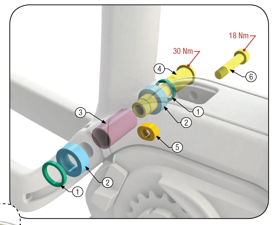 Trek Powerfly Ersatzteile Hinterbaulager untere Schwinge, Lager und Schrauben