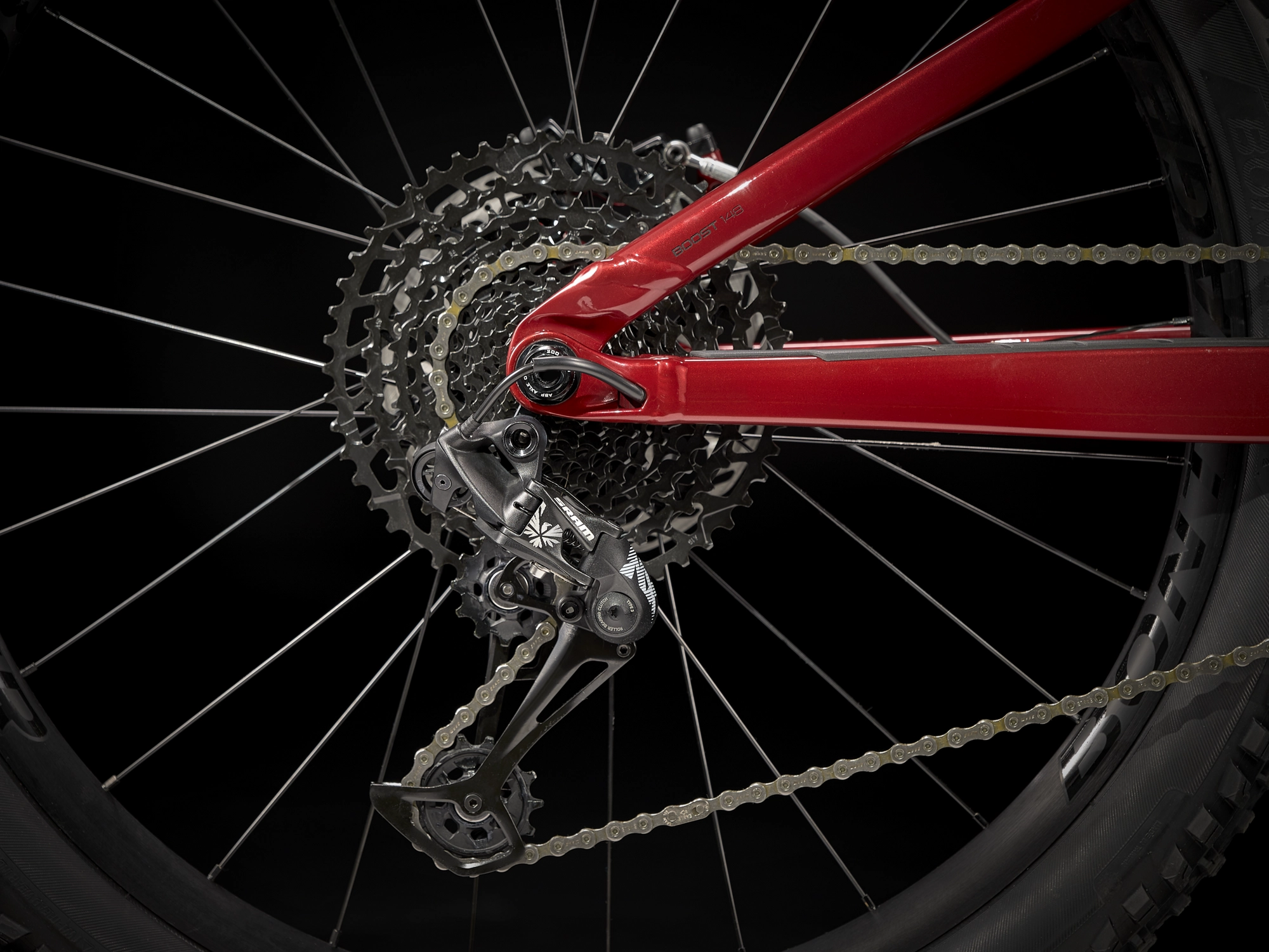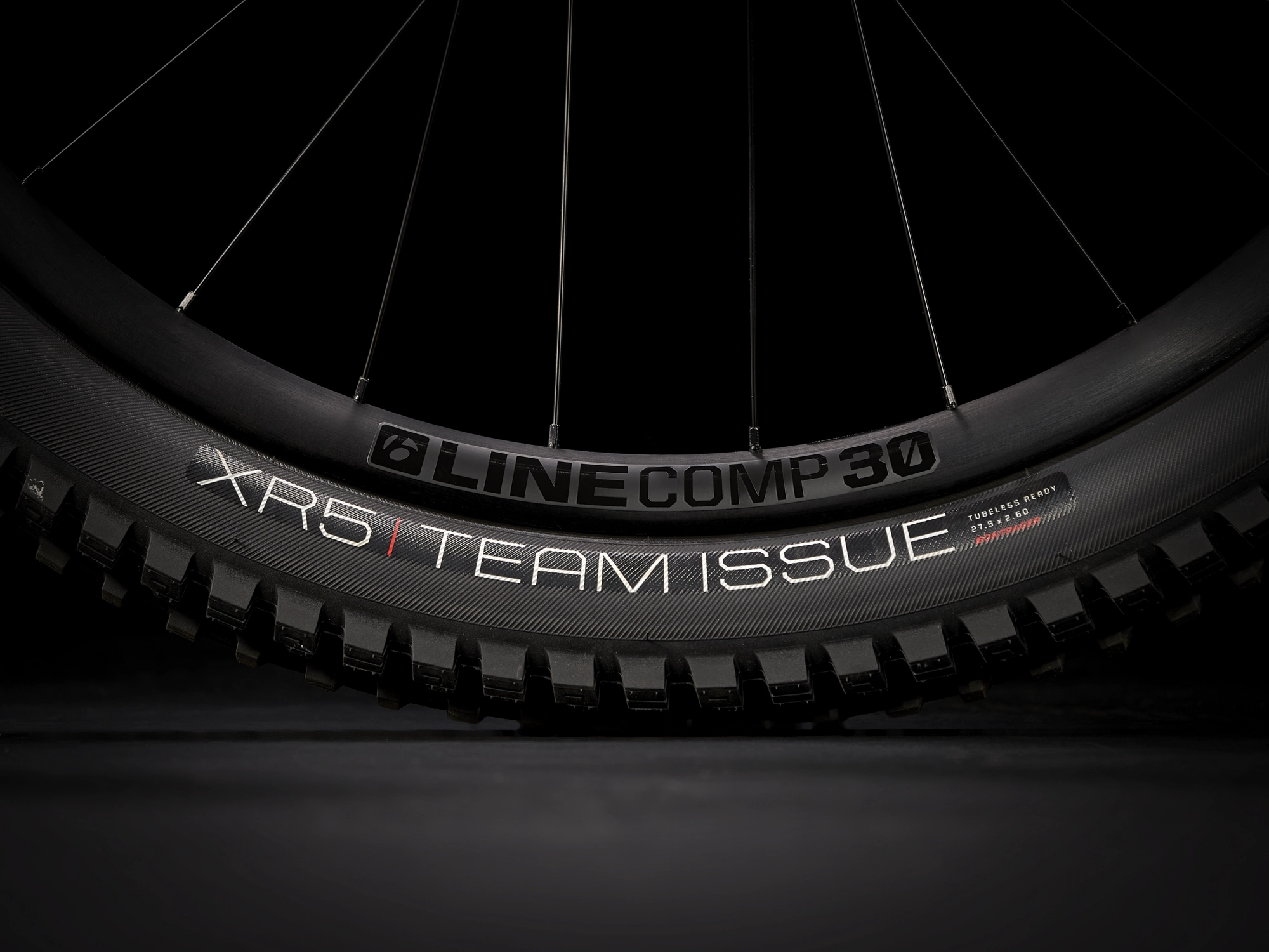 Einen Rahmen aus Alpha Platinum Aluminium samt RockShox Deluxe Select+-Dämpfer mit 150 mm Federweg. Dazu gibt‘s eine RockShox Gold RL-Federgabel mit perfekt ansprechender 160 mm DebonAir-Feder sowie einen robusten SRAM NX Eagle-Antrieb. Außerdem kommt das Bike mit kraftvoll zupackenden, hydraulischen 4-Kolben-Scheibenbremsen für maximales Vertrauen auf Abfahrten und komplett schlauchlosen Bontrager Line Comp 30-Laufrädern samt Dichtmittel.