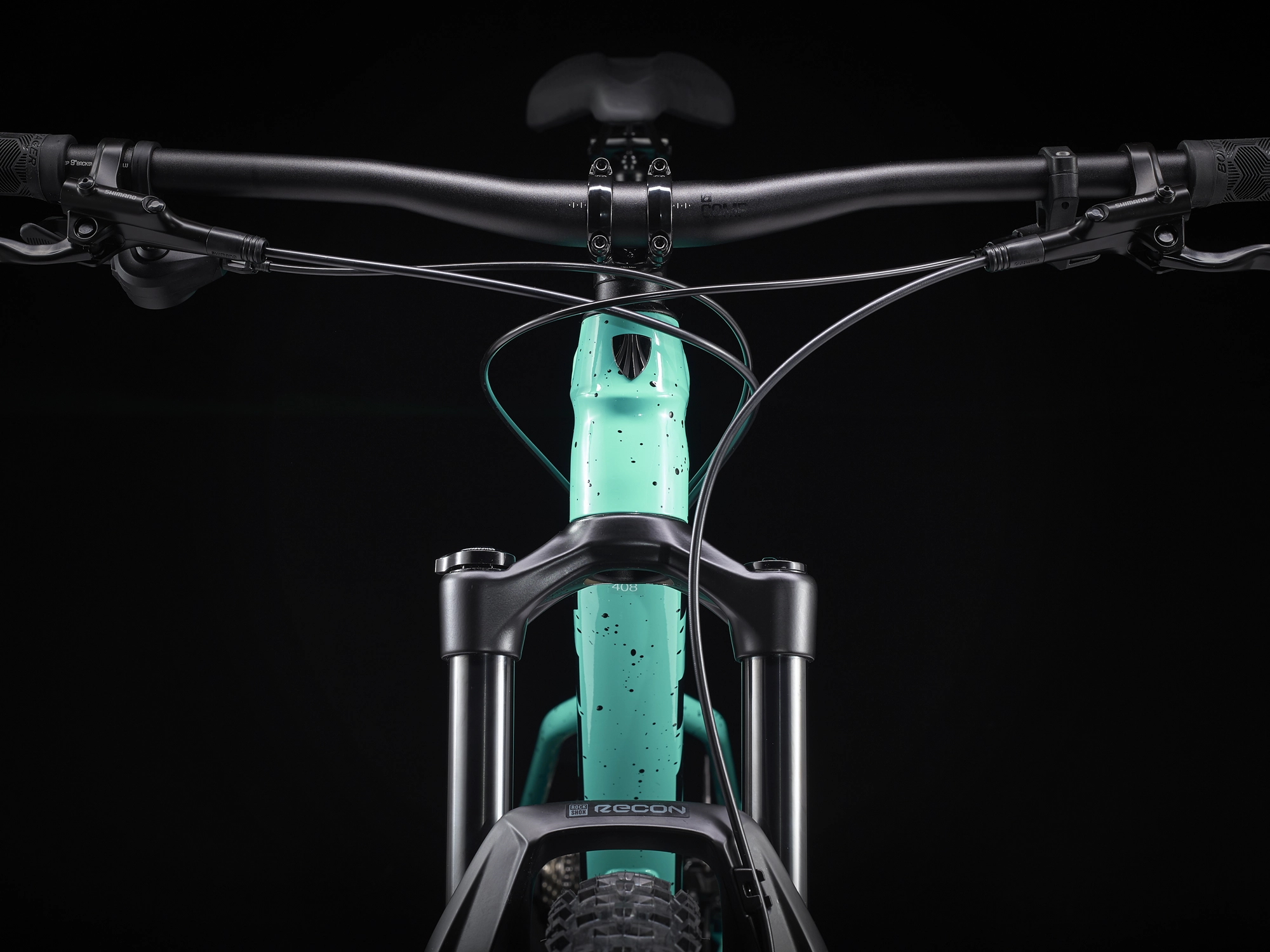 Einen leichten Aluminiumrahmen, schnell rollende 29er-Laufräder mit griffigen, 2,6″ breiten Reifen und eine 140 mm RockShox Recon-Gabel mit Lockout-Funktion. Dazu kommt es mit einem zuverlässigen Shimano 1×12-Antrieb mit breitem, kletterfreudigem Übersetzungsverhältnis, kraftvoll zupackenden, hydraulischen Scheibenbremsen und einer Variosattelstütze für mehr Platz auf Abfahrten, in Kurven und in der Luft.