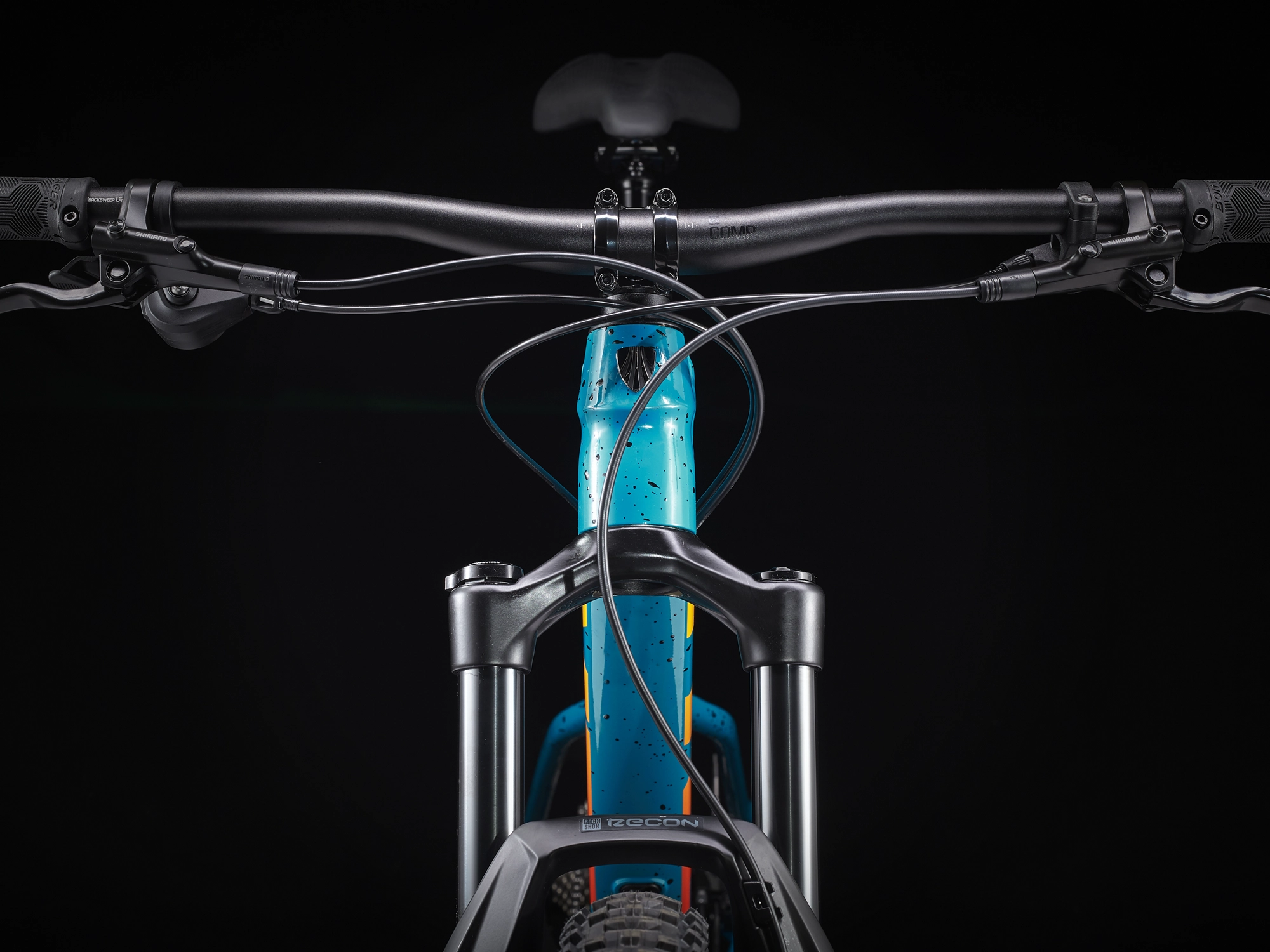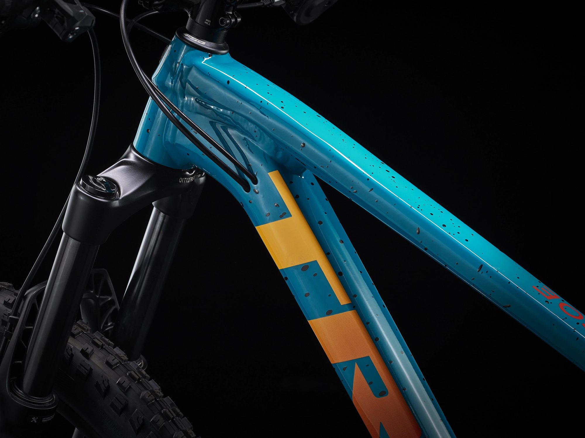 Einen leichten Aluminiumrahmen, schnell rollende 29er-Laufräder mit griffigen, 2,6″ breiten Reifen und eine 140 mm RockShox Recon-Gabel mit Lockout-Funktion. Dazu kommt es mit einem zuverlässigen Shimano 1×12-Antrieb mit breitem, kletterfreudigem Übersetzungsverhältnis, kraftvoll zupackenden, hydraulischen Scheibenbremsen und einer Variosattelstütze für mehr Platz auf Abfahrten, in Kurven und in der Luft.
