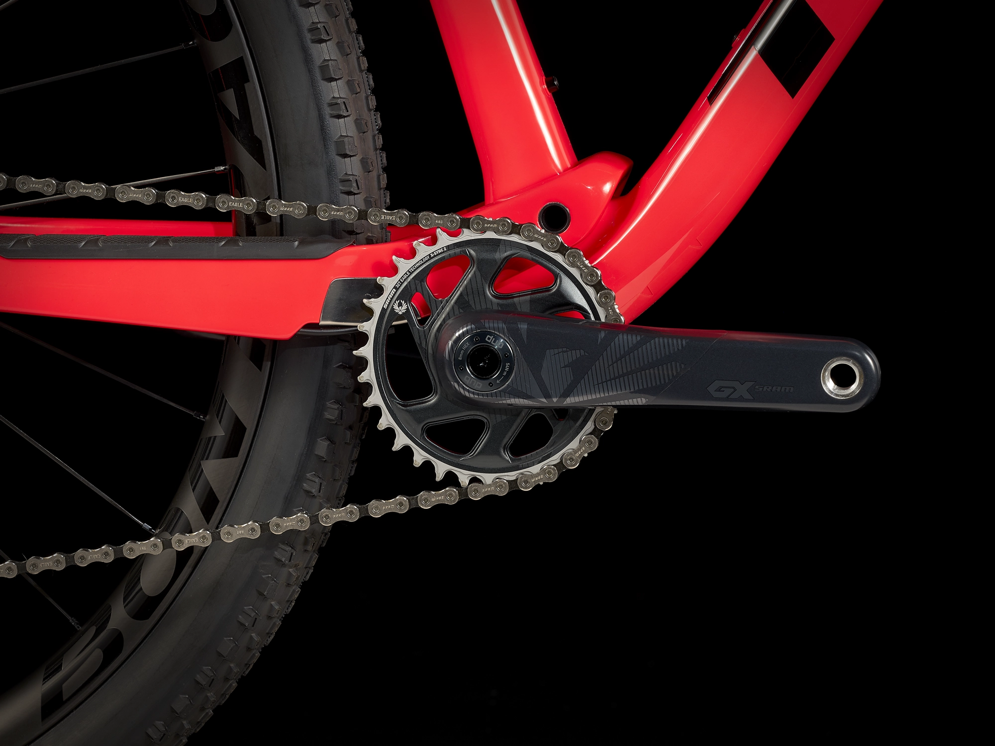 Treks MTB-spezifisches Carbon ist dafür ausgelegt, den extremen Anforderungen von Offroad-Rennen standzuhalten. Mithilfe fortschrittlicher Analysen sind unsere Designer in der Lage, einen Rahmen mit der besten Mischung aus leichtem Gewicht und hoher Agilität sowie mit ausreichender Nachgiebigkeit in den Sitzstreben zu entwickeln, um eine Hinterradfederung überflüssig zu machen.