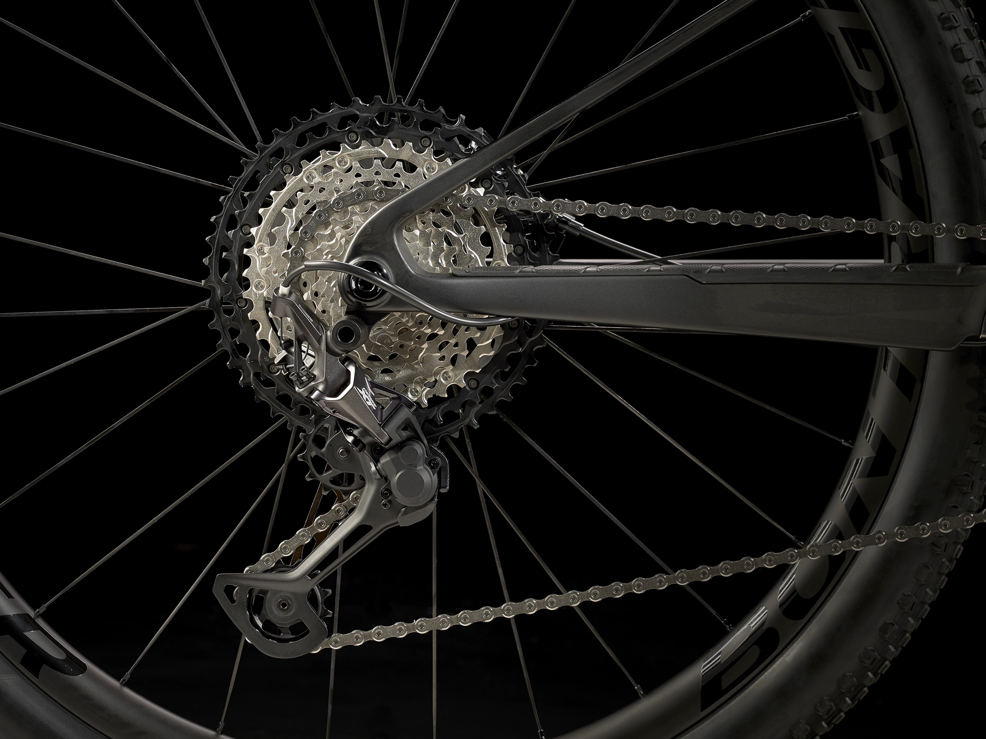 Treks MTB-spezifisches Carbon ist dafür ausgelegt, den extremen Anforderungen von Offroad-Rennen standzuhalten. Mithilfe fortschrittlicher Analysen sind unsere Designer in der Lage, einen Rahmen mit der besten Mischung aus leichtem Gewicht und hoher Agilität sowie mit ausreichender Nachgiebigkeit in den Sitzstreben zu entwickeln, um eine Hinterradfederung überflüssig zu machen.