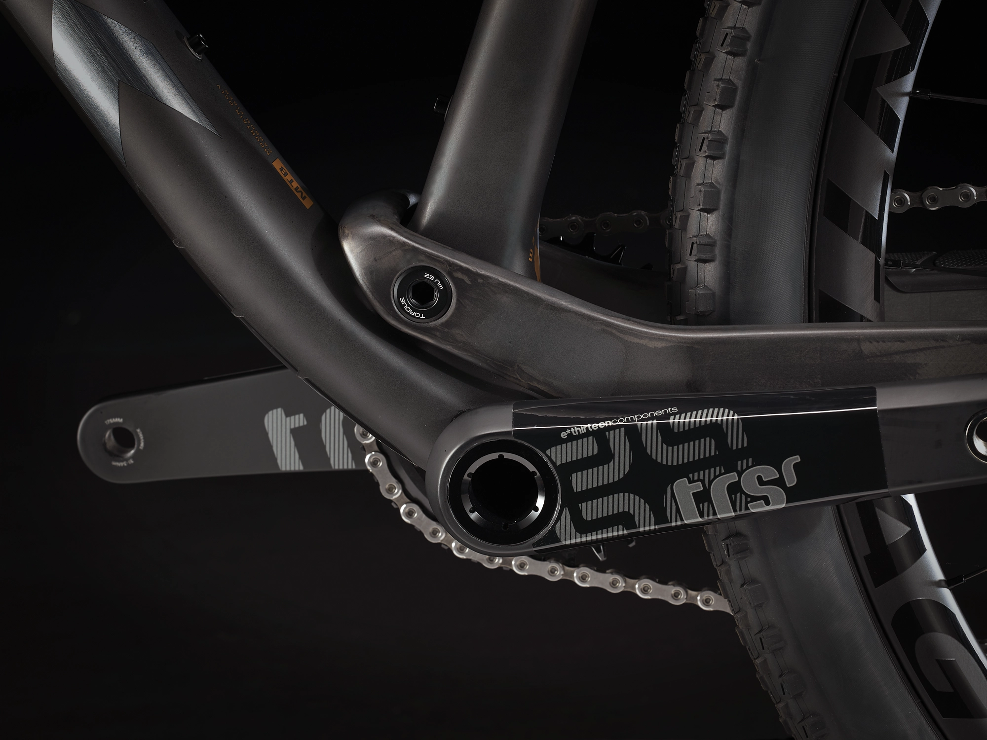 Einen ultraleichten, komplett aus OCLV Mountain Carbon gefertigten Rahmen mit 60 mm Federweg, eine FOX Performance 32 Step-Cast-Gabel mit 100 mm Federweg und Treks exklusiven, speziell für das Supercaliber entwickelten IsoStrut FOX Performance-Dämpfer. Dazu gibts einen Remote-Lockout, die leichtgängigen, präzisen Gangwechsel eines Shimano XT-Antriebs, eine integrierte Bontrager RSL Lenker/Vorbau-Einheit und Bontrager Kovee Pro 30-Carbonlaufräder samt Rapid Drive-Hinterradnabe mit 108 Zähnen für einen verzögerungsfreien Kraftschluss.