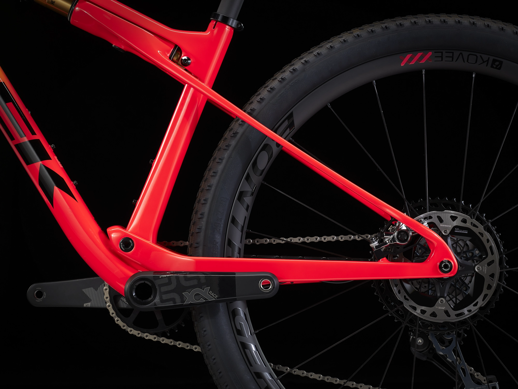 Treks MTB-spezifisches Carbon ist dafür ausgelegt, den extremen Anforderungen von Offroad-Rennen standzuhalten. Mithilfe fortschrittlicher Analysen sind unsere Designer in der Lage, einen Rahmen mit der besten Mischung aus leichtem Gewicht und hoher Agilität sowie mit ausreichender Nachgiebigkeit in den Sitzstreben zu entwickeln, um eine Hinterradfederung überflüssig zu machen.