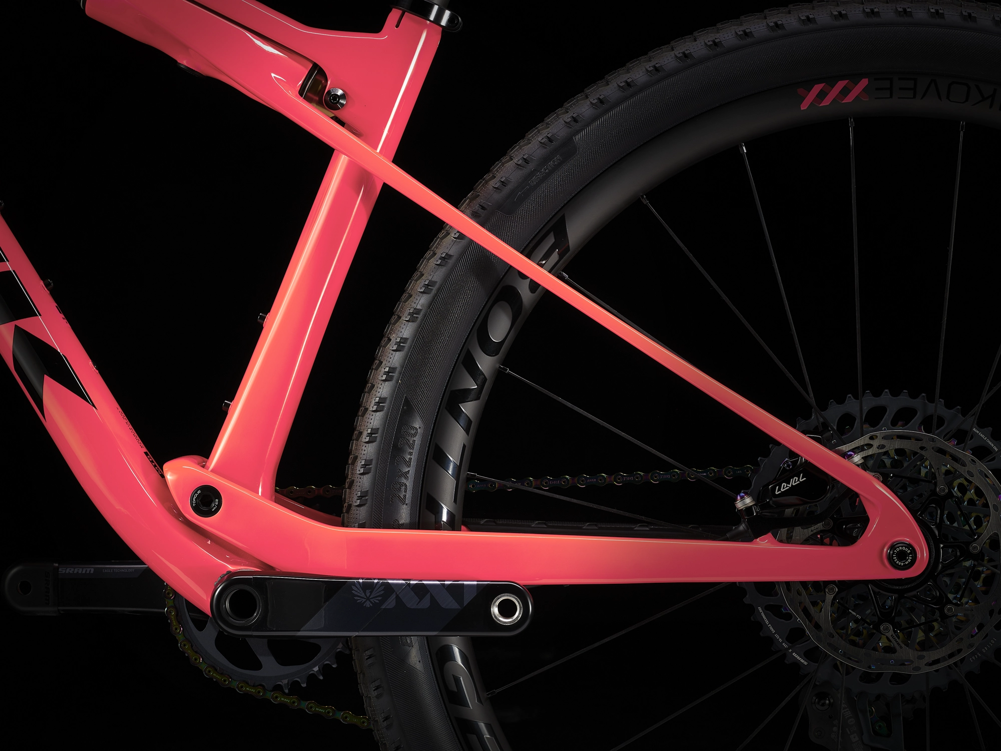 – Die breiteren Kovee XXX 30-Laufräder verbessern die Abstützung der Reifen, damit du für mehr Traktion mit niedrigerem Reifendruck fahren kannst.