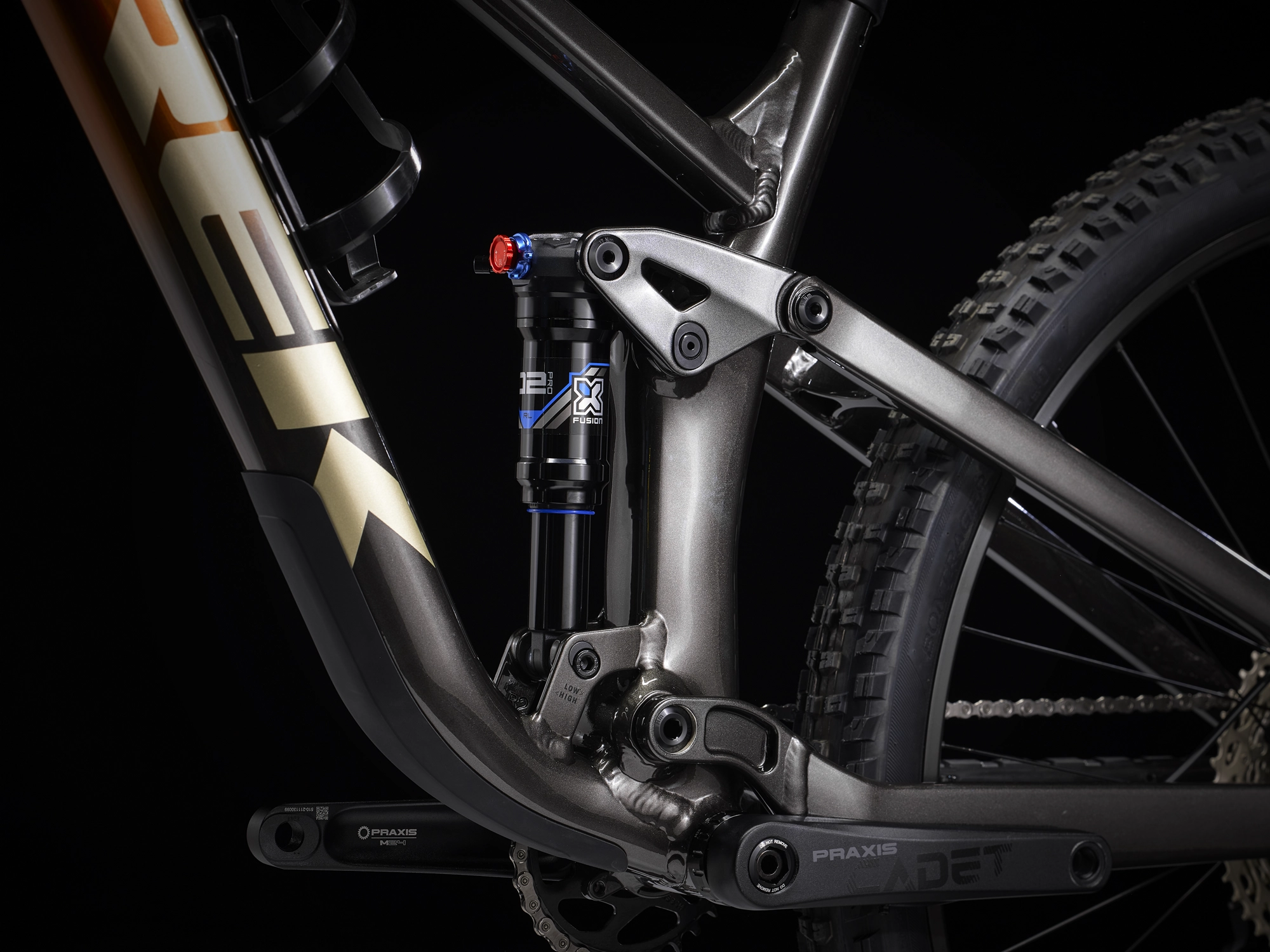 Das Top Fuel 5 ist ein effizientes und leistungsfähiges Full-Suspension-Mountainbike. Es meistert ruppige Abfahrten souverän, fliegt Anstiege mit ganz viel Schwung hinauf und macht auf flachen Abschnitten richtig Dampf. Der leichte und robuste Aluminiumrahmen ist mit Teilen bestückt, die eine hohe Performance sicherstellen und den Preis des Bikes gleichzeitig niedrig halten. Daher eignet sich dieses Top Fuel hervorragend als dein erstes vollgefedertes Trailbike.… du dich Hals über Kopf in den Mountainbike-Sport verliebt hast und bereit bist für die Souveränität, die Traktion und die Leistungsfähigkeit eines Full-Suspension-Mountainbikes. Dafür suchst du einen robusten Rahmen und eine solide Ausstattung für maximale Performance zu einem fairen Preis.Einen leichten Aluminiumrahmen mit internem Staufach, eine RockShox Recon-Gabel mit 130 mm Federweg, einen X-Fusion Pro 2-Dämpfer mit 120 mm Federweg und einen Shimano Deore 1×12-Antrieb mit breitem Übersetzungsbereich. Dazu bekommst du Tubeless Ready-Laufräder, hydraulische Scheibenbremsen und eine Variosattelstütze.Ein solides Full-Suspension-Bike zu einem geldbeutelfreundlichen Preis. Das Bike mit dem besten Preis-Leistungs-Verhältnis in der Top Fuel-Familie garantiert ganz viel Spaß auf jedem Trail.- Sein beeindruckend effizientes Fahrwerkssetup macht jeden Unfug mit.- Mit Mino Link kannst du die Geometrie des Rahmens sogar unterwegs schnell und einfach feinabstimmen.- Ein schlankes, im Rahmen integriertes Staufach ermöglicht die Unterbringung von Werkzeug und Ausrüstung.- Ein neuer, abnehmbarer Knock Block ermöglicht einen größeren Lenkwinkel und schützt Züge und Hülsen, ohne den Wendekreis einzuschränken.Active Braking PivotActive Braking Pivot erlaubt unseren Ingenieuren die Feinabstimmung, wie die Federung unabhängig voneinander auf Beschleunigungs- und Bremskräfte reagiert. Das vermittelt dir in kritischen Situationen mehr Vertrauen.Schnell und souveränDie 120 mm hinterer Federweg und die progressive Trailgeometrie sorgen für ein dynamisches, agiles Fahrverhalten, damit du selbst in ruppigen Trailpassagen stets cool bleiben kannst.Integriertes StaufachDank integriertem Staufach kannst du den Rucksack zu Hause lassen, ohne auf das Notwendigste für deine Ausfahrt verzichten zu müssen.Unkomplizierte ZugverlegungDank klapperfreier interner Zugführung ist das Top Fuel auf dem Trail leise und in der Werkstatt wartungsfreundlich.Hat mein Bike ein gebogenes Oberrohr?Bei den kleineren Rahmen (XS und S) ist das Oberrohr gebogen. Dieses Design sorgt für eine niedrigere Überstandshöhe, wovon kleinere Fahrer und Fahrerinnen beim Auf- und Absteigen profitieren. Die größeren Rahmen (ab Größe M) kommen mit einem geraden Oberrohr, da größere Fahrer in der Regel kein Problem mit der Überstandshöhe haben.Shimano DeoreMit noch mehr Übersetzungskombinationen fürs Steile, Schnelle und Spaßige macht Shimano Deore noch mehr Abenteuer möglich. Die geschmeidige Fahrqualität, die optimierte Kettenstabilität und die präzisen Gangwechsel der Deore sorgen auf dem Mountainbike für ein souveränes und kontrolliertes Fahrgefühl, damit du den Trail in vollen Zügen genießen kannst.Geschlecht: UniRahmen: Alpha Platinum Aluminium, internes Staufach, konisches Steuerrohr, Knock Block 2.0, interne Zugführung, Unterrohrschutz, Magnesiumumlenkhebel, Mino Link, ABP, Boost148, 120 mm FederwegRahmengröße: XLRahmenmaterial: AluminiumGangschaltung: Shimano Deore M6100, langer KäfigAnzahl Gänge: 1Schalthebel: Shimano Deore M6100, 12fachHinterradbremse: Hydraulische Scheibenbremse Shimano MT200Shimano RT26, 6-Loch-Scheibenaufnahme,180 mm // Shimano RT26, 6-Loch-Scheibenaufnahme,160 mmMax. BremsscheibenduVorderradbremse: Hydraulische Scheibenbremse Shimano MT200Shimano RT26, 6-Loch-Scheibenaufnahme,180 mm // Shimano RT26, 6-Loch-Scheibenaufnahme,160 mmMax. BremsscheibenduReifen: Bontrager XR4 Team Issue, 29 x 2.40Gabel: RockShox Recon Silver RL, Solo Air, Motion Control-Dämpfung, Lockout, konischer Gabelschaft, 42 mm Vorbiegung, Boost110, 15 mm Maxle Stealth-Achse, 120 mm FederwegSchaltwerk hinten: Shimano Deore M6100, langer KäfigKurbelsatz: Shimano MT512, 30 Z, 55 mm Kettenlinie, 175 mm KurbelarmlängeShimano BB-MT501 BSAKassette: SunRace CSMZ800 11-51, 12 speedKette: Shimano Deore M6100Lenker: Bontrager, Aluminium, 31,8 mm, 15 mm Rise, 750 mm BreiteLenkervorbau: Bontrager Rhythm Comp, Knock Block, 31,8 mm, 0 Grad, 50 mm LängeLenkerband Griffe: Bontrager XR Trail Comp, NylonklemmeSattel: Bontrager Arvada, Stahlstreben, 138 mm BreiteSattelstütze: TranzX JD-YSI-22PLQ, 170 mm Hub, interne Zugführung, 34,9 mm, 497 mm LängeRäder: Bontrager Aluminiumnaben, Alex MD35 FelgenAlex MD35, passer til Tubeless, 32-Loch, 35 mm Innenweite, Presta-VentilBontrager, Aluminium, 6-Loch-Scheibenaufnahme, Boost110, 15-mm-Steckachse