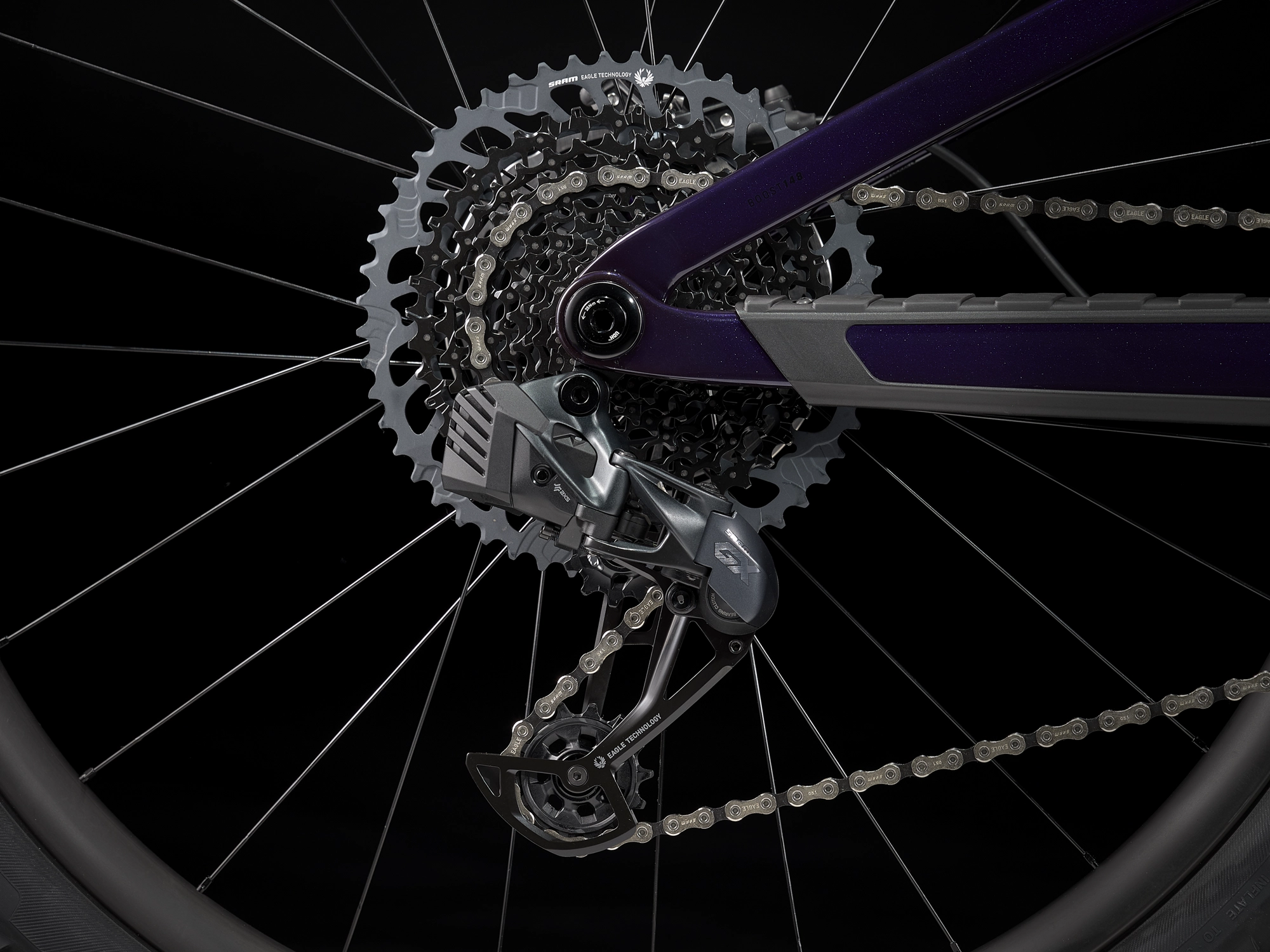 Einen leichten und steifen Vollcarbonrahmen, eine RockShox SID Select+-Gabel mit 120 mm Federweg, einen RockShox Deluxe Ultimate RCT-Dämpfer mit 120 mm Federweg und einen drahtlosen elektronischen SRAM GX Eagle AXS-Antrieb mit extragroßem 52-Zähne-Klettergang. Außerdem kommt es mit breiten Bontrager Line Elite 30-Carbonlaufrädern samt Rapid Drive-Nabe mit 108 Zähnen für einen verzögerungsfreien Kraftschluss, einer Bontrager Line Elite-Variosattelstütze und einem Carbonlenker.
