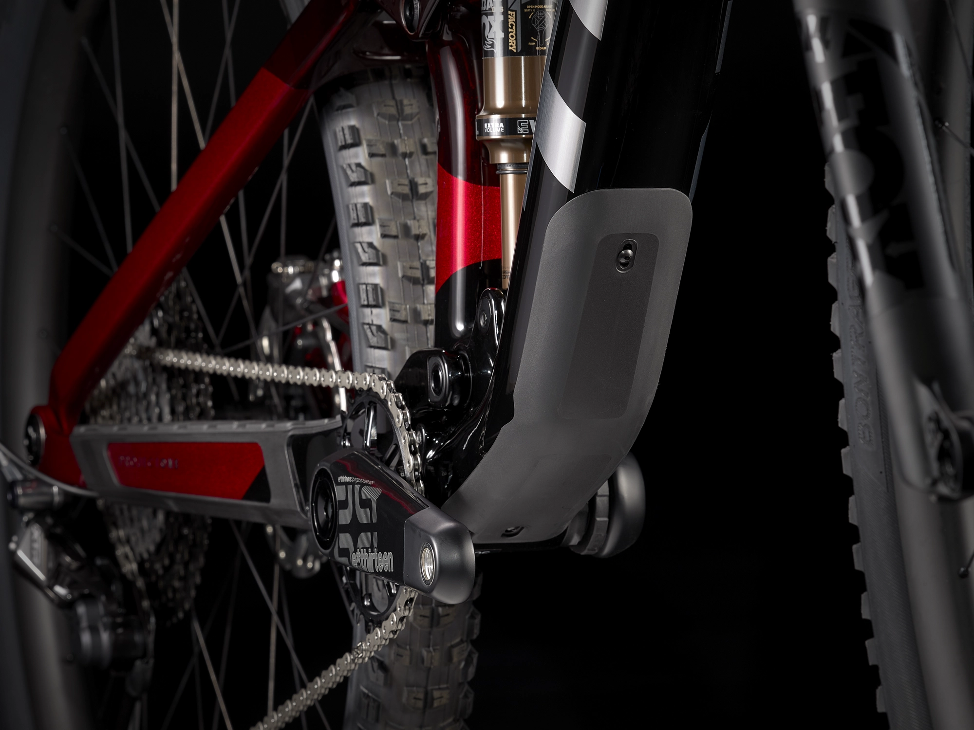 Einen leichten und steifen Vollcarbonrahmen, eine FOX Factory 34-Gabel mit 130 mm Federweg, einen FOX Factory Float-Dämpfer mit 120 mm Federweg und einen geschmeidig schaltenden, präzisen Shimano XTR 1×12-Antrieb. Außerdem kommt es mit breiten Bontrager Line Pro 30-Carbonlaufrädern samt Rapid Drive-Nabe mit 108 Zähnen für einen verzögerungsfreien Kraftschluss und ist mit ganz viel Carbon bestückt.