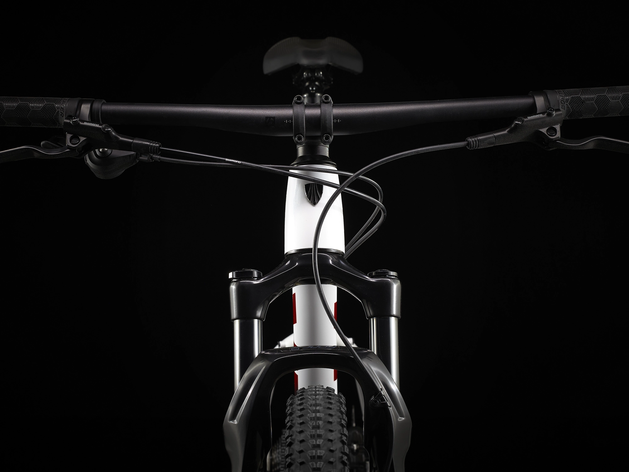 Einen leichten Aluminiumrahmen, eine RockShox Judy SL-Gabel mit 100 mm Federweg, TurnKey-Lockout und leichter, verstellbarer Luftfeder, Tubeless Ready-Laufräder mit Boost141-Einbaubreite und einen Shimano Deore 1×12-Antrieb mit breitem Übersetzungsbereich.